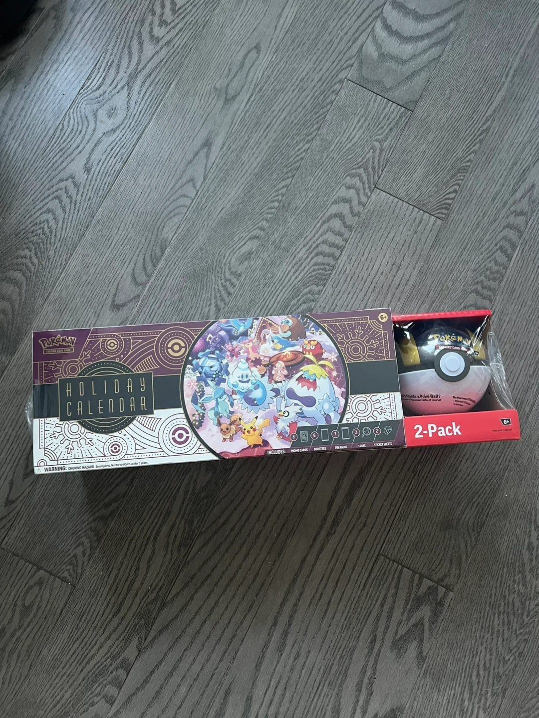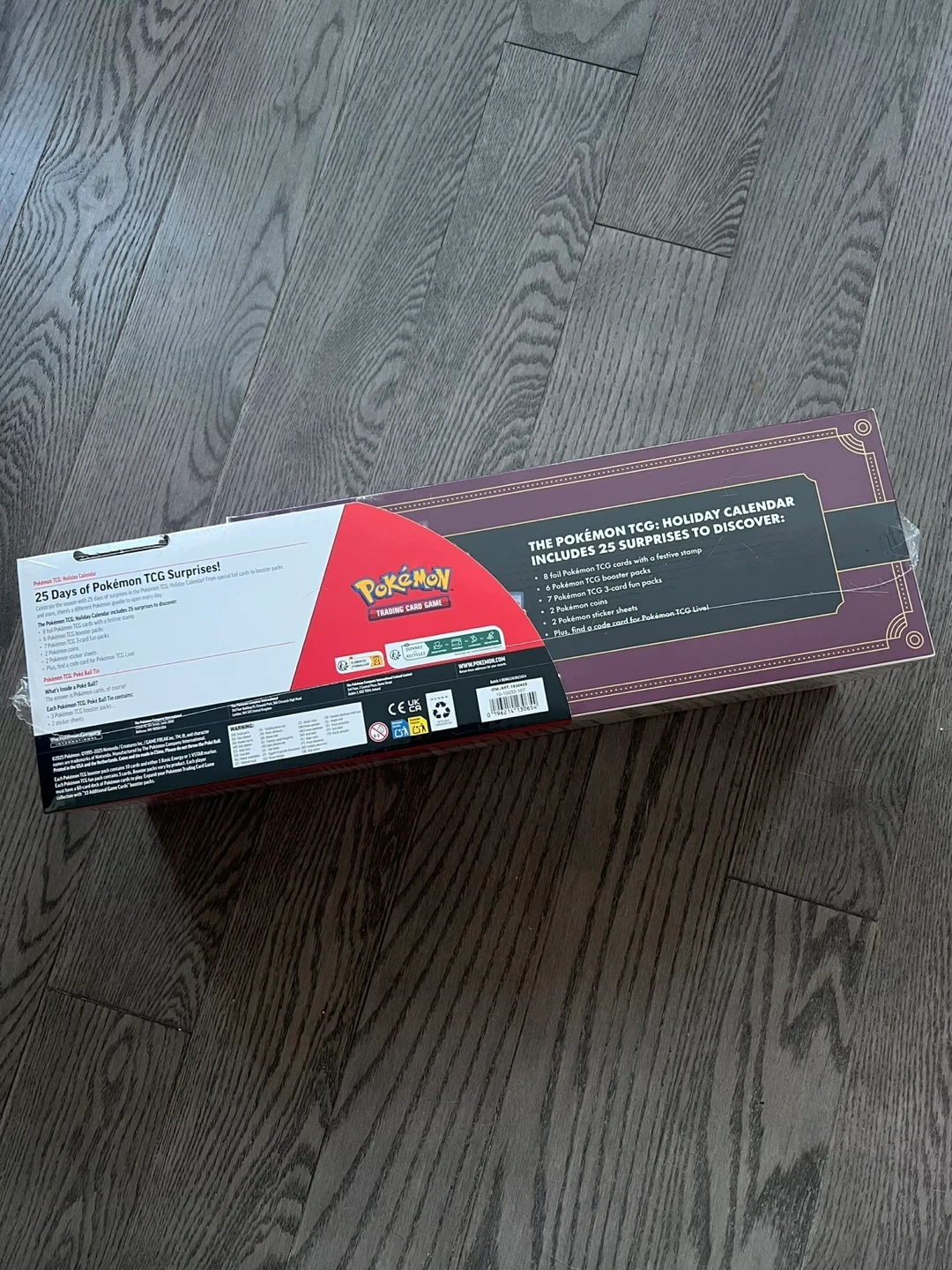 Selling a brand new Pokémon TCG Holiday Calendar that includes 25 surprises to discover! It comes with: - 6 foil Pokémon TCG cards including 2 with a festive stamp - 6 Pokémon TCG booster packs - 5 Pokémon TCG 3-card fun packs - 2 Pokémon coins - 2 sticker sheets - 1 side code card for Pokémon TCG Live Also included is a 2-pack of Pokémon Trading Card Game booster packs