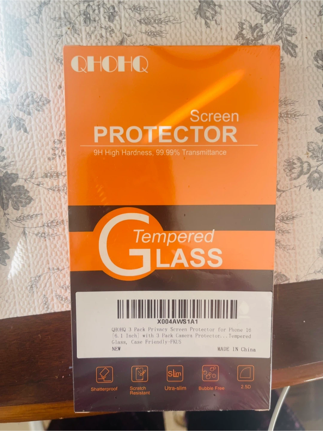 10I'm selling a brand new QHOHQ 3 pack privacy screen protector for the iPhone 16 (6.1 inch). It has 9H high hardness and 99.99% transmittance. The screen protector is shatterproof, scratch resistant, ultra-slim, and bubble free! It also includes a 3 pack camera protector and is case friendly