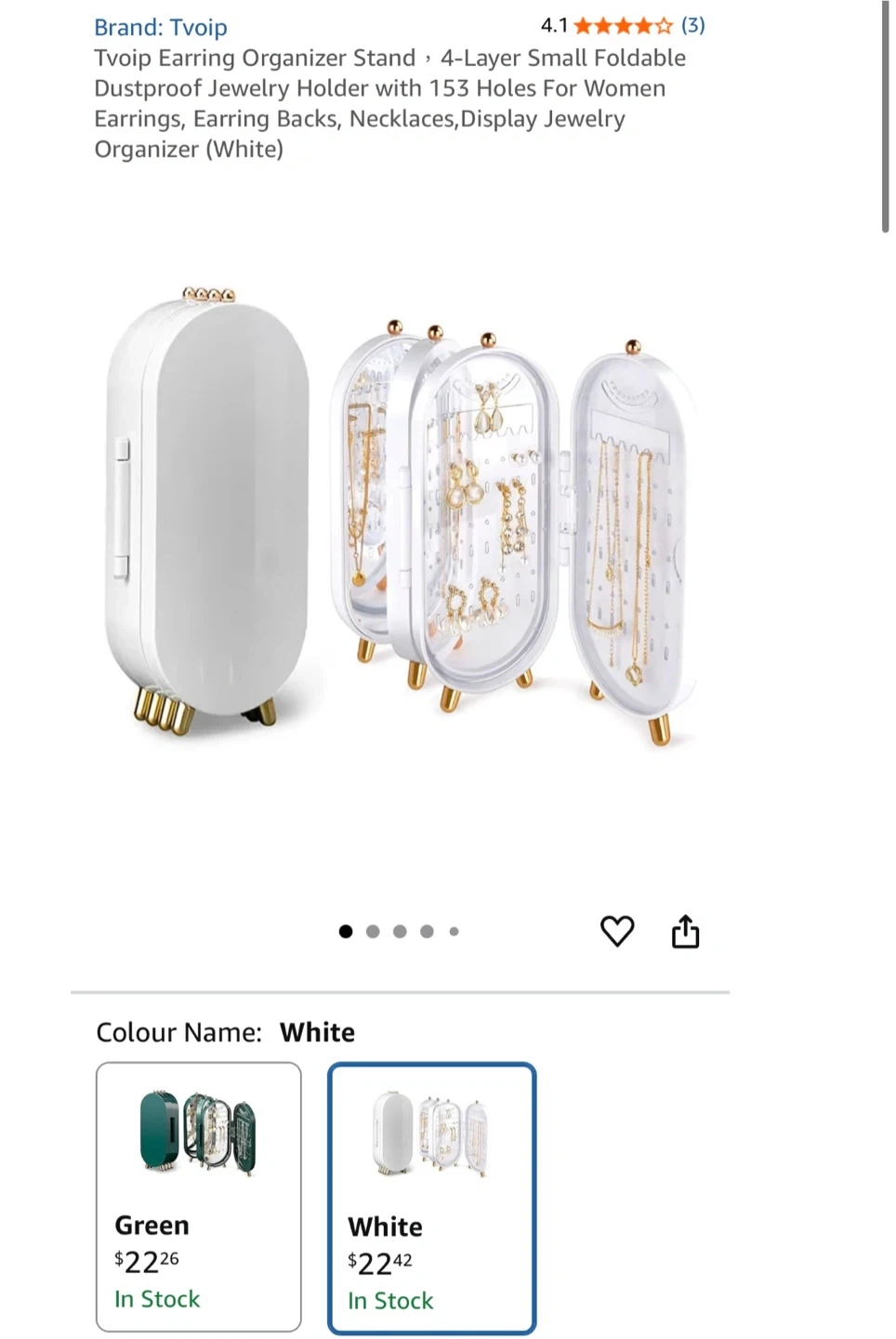 10Selling a brand new QUO Beauty Jewellery Organizer, still in its original packaging! ✅ Retail price for similar new item is $22.42 (before tax) on Amazon CA ✅ This organizer is perfect for keeping your jewellery neat and tidy (jewellery sold separately) ✅ Great for minimalist and dainty jewellery/earring collections! ✅ Includes a mirror and is gold, white, and clear-coloured