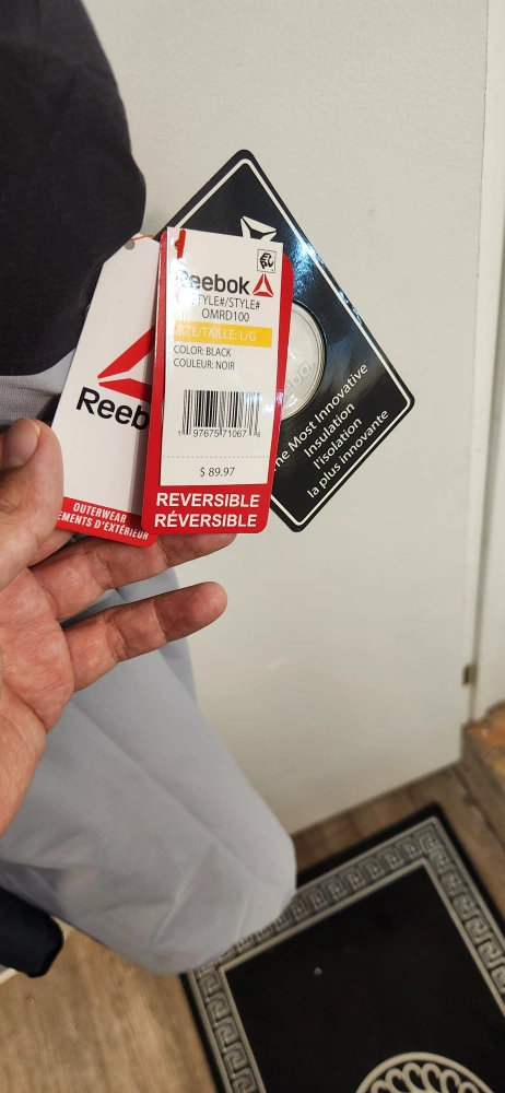 Selling a brand new Reebok jacket! It's black and grey and a size large. The style number is OMD100. It's reversible and originally bought for $89.97 Pick up in Orleans.