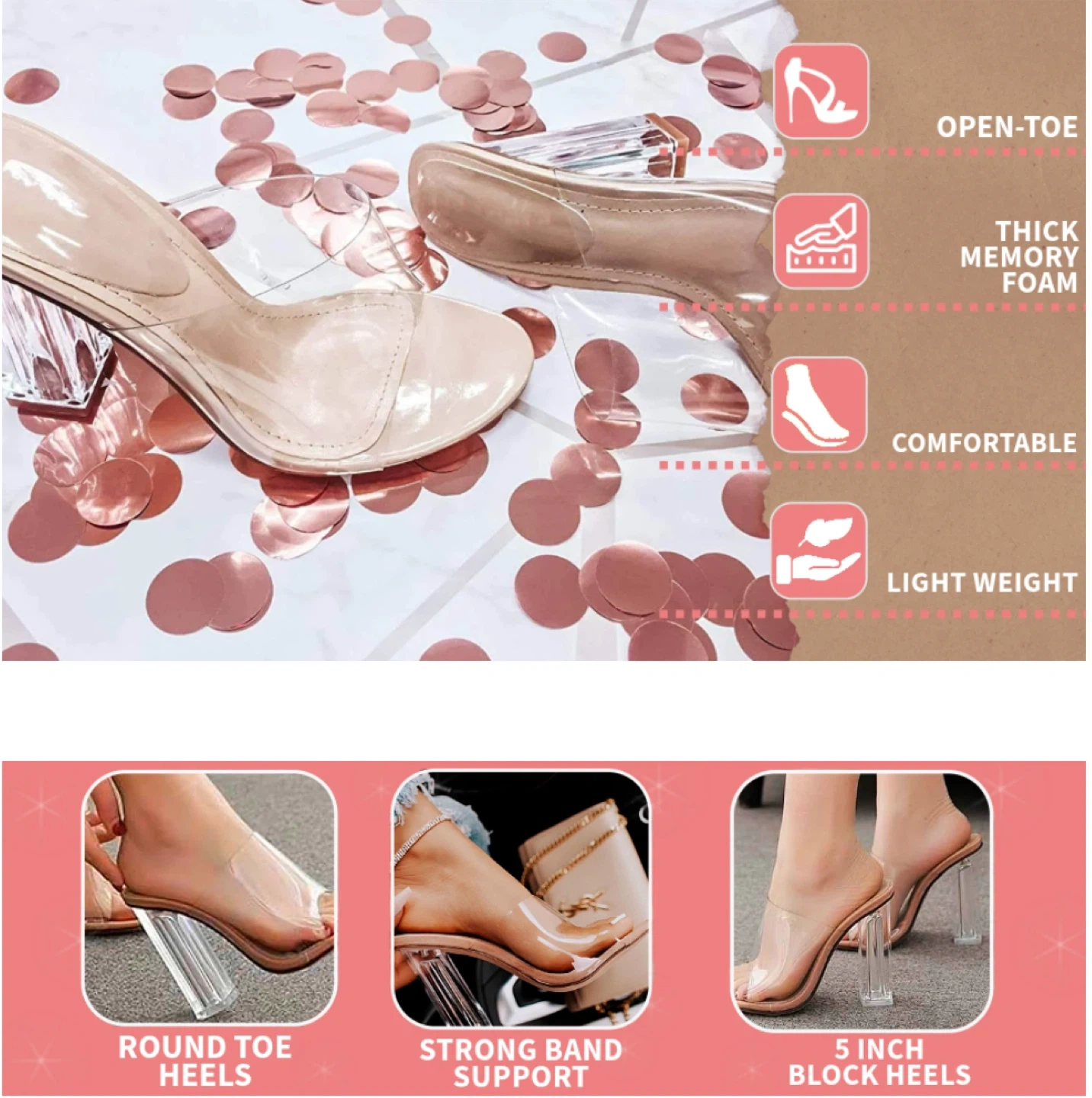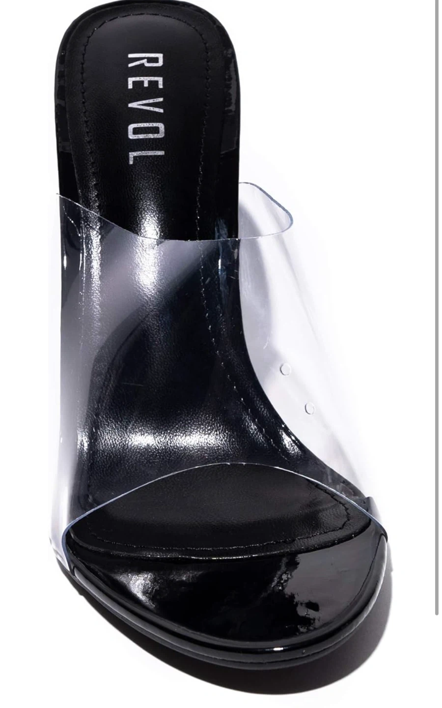 23These Revol clear block heels are super stylish and comfortable! They feature a thick memory foam insole and a strong band support. The open-toe design and lightweight feel make them perfect for any occasion. These are size 9!
