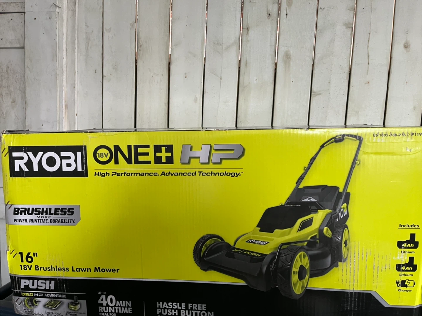 18I'm selling a brand new Ryobi ONE+ HP 16" 18V Brushless Lawn Mower! It features high performance advanced technology and includes a 4Ah lithium battery and charger. It also has a hassle-free push button start and brushless motor.