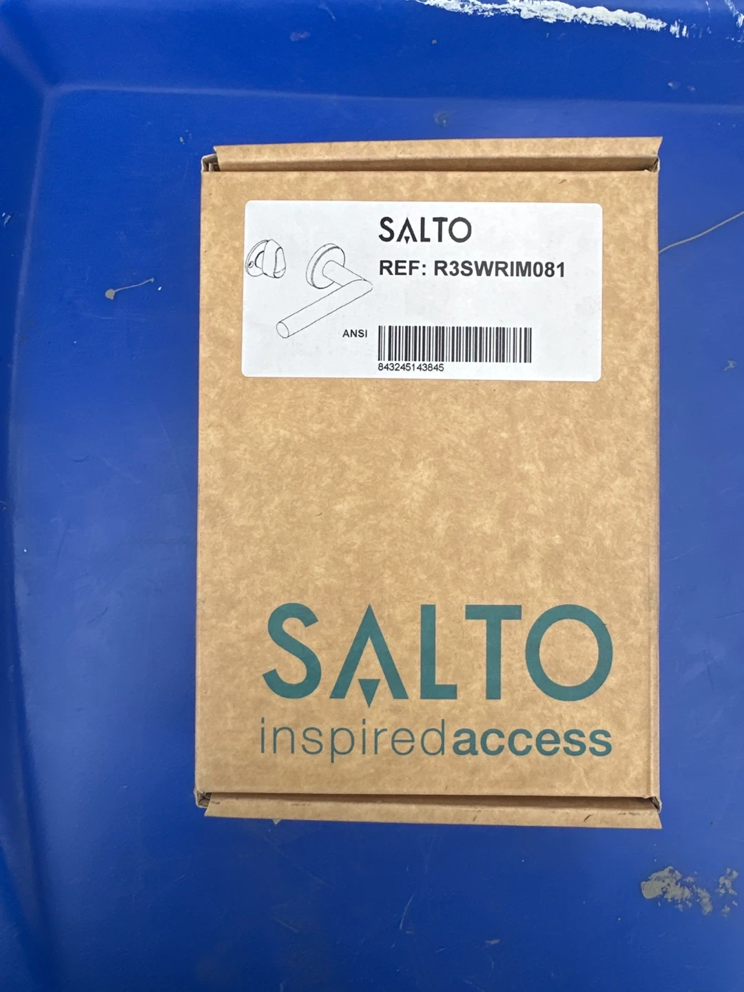 73Selling a brand new SALTO door lever handle, model R3SWRIM081. It's still in its original box and includes all the components and accessories as shown in the pictures. Perfect for adding a touch of modern security to your home!