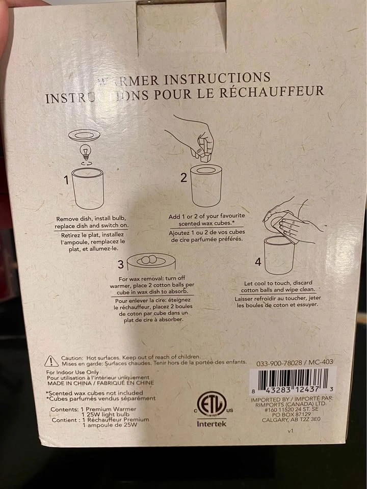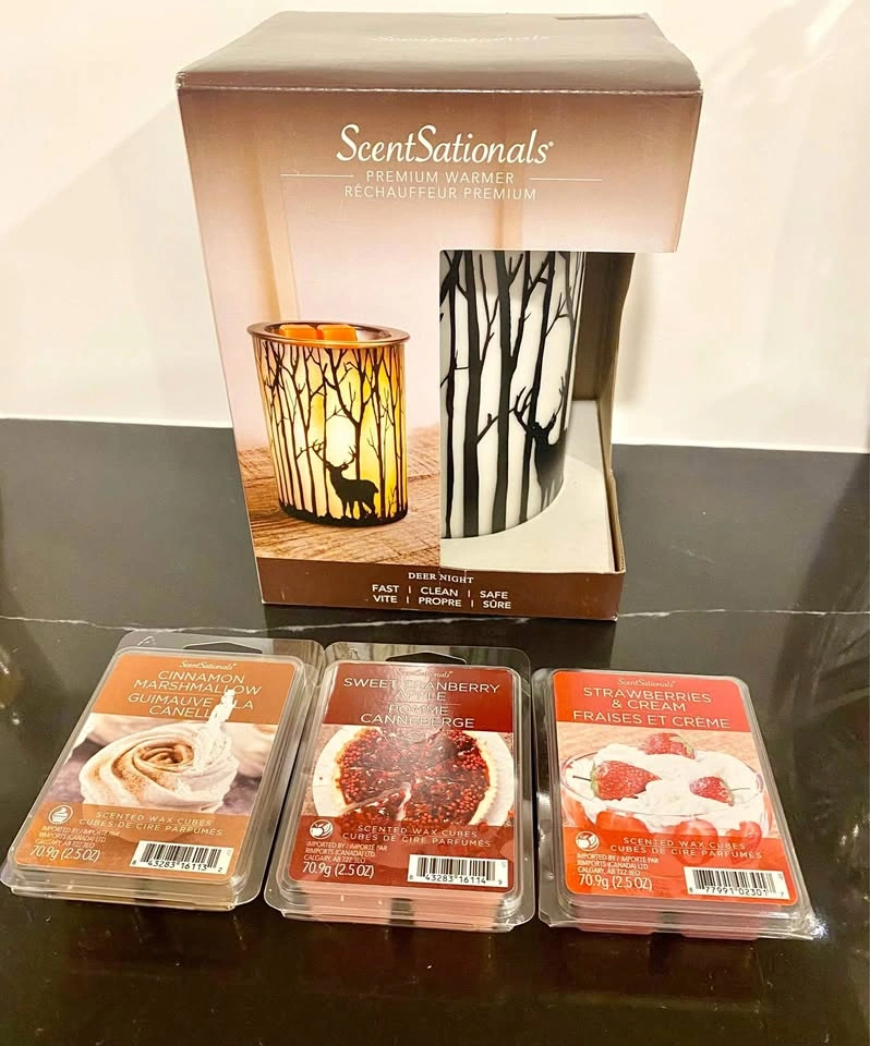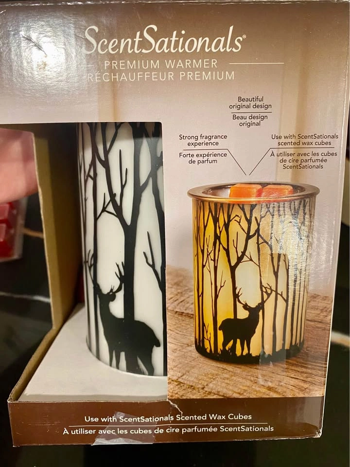 New in box wax warmer with 3 new wax melts. Pickup in East York at O’Connor & Greenwood. ScentSationals Deer Night premium wax warmers gently melt scented wax, releasing aromatic scents that fill an entire room with inviting warmth. It produces a soft glow from inside when plugged in. The soft 25W light provides a relaxing, decorative atmosphere and melts your choice of fragrance wax cubes. The fragrance wax warmer creates a relaxing atmosphere while giving you a safe heat source to melt your choice of fragrance wax melts. The use of an electric light makes this a safe way to heat your fragrance with no soot or residue. A ScentSationals Wax Warmer is perfect for adding the right amount of ambience and fragrance to your space.