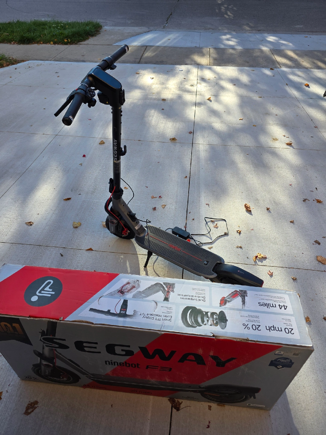 5Recently purchased Segway F3 Scooter Brand new Used for approx less than 2 weeks, mileage is under 30 kms. I have the receipt for it, as well as its charger, maintenance tools, and original box Selling after purchasing another scooter Specs are well known, Segway is a respected and reliable scooter brand Top speed: 32kmph Walk, Eco, Drive, and Sport modes Range is approx 70kms in Eco mode Full suspension Headlight and running lights 10 inch wheels This scooter is valued at over $1000 before taxes at most retail stores online and in person Text for further information