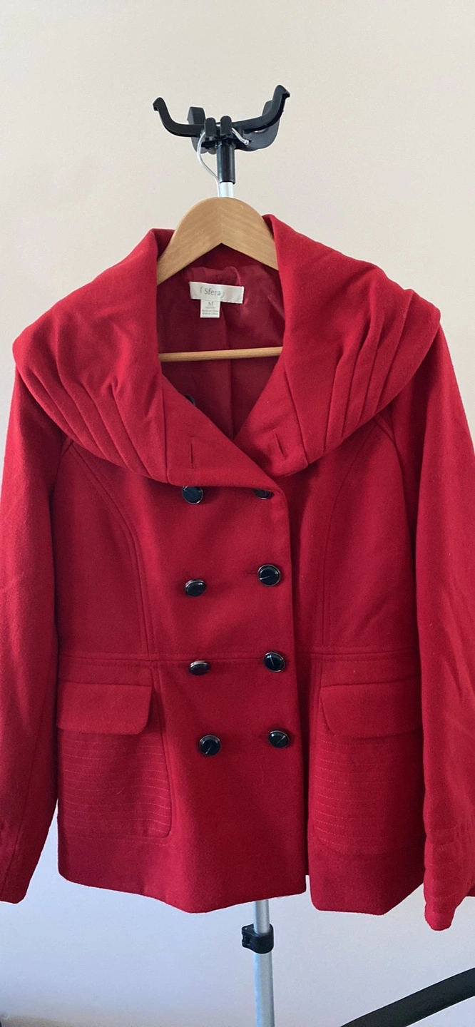 45Selling a stylish red double-breasted fall coat from Sfera. It has never been worn - purchased in Spain. Size medium. Perfect for adding a pop of colour to your wardrobe! Pick up in Sundance.