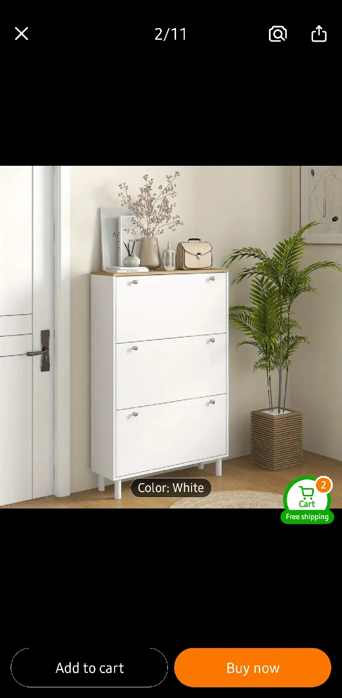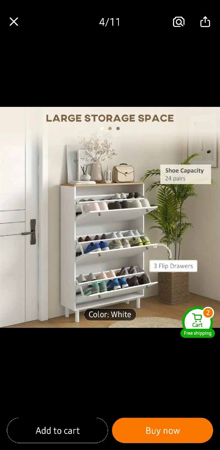 Keep your entryway neat with this white 3-tier shoe cabinet! It offers large storage space, holding up to 24 pairs of shoes. The cabinet features three flip drawers, making it easy to access your footwear. Dimensions are approximately 47.6 inches (121 cm) in height, 29.3 inches (74.5 cm) in width, and 9.3 inches (23.5 cm) in depth. The product is entirely NEW and remains in its original packaging. We have not yet opened it, as we ordered two but ultimately only needed one. The initial purchase price was 189 CAD. I have attached photos of my custom-built cabinet. It appears to be quite impressive, and it effectively keeps everything organized, accommodating even the largest shoes. It can be customized to suit individual requirements.