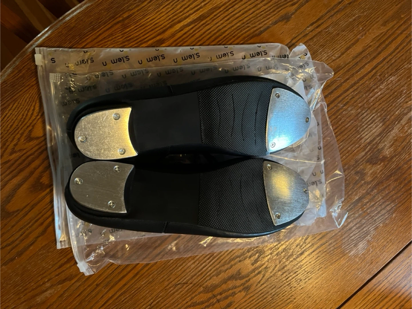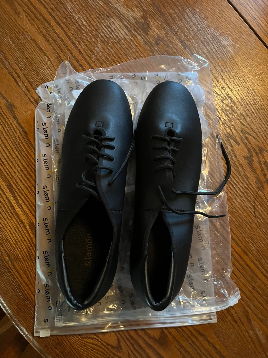 95Selling a pair of brand new Slemón black leather tap shoes! They're still in the original packaging and ready for a new home. Perfect for dance classes or performances! Size 10 women’s