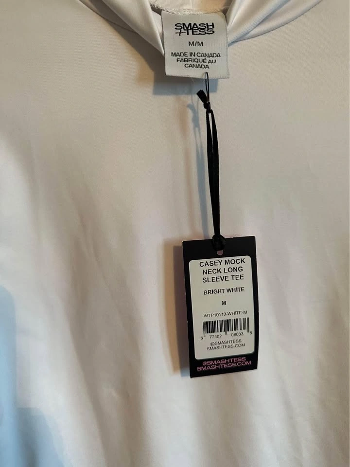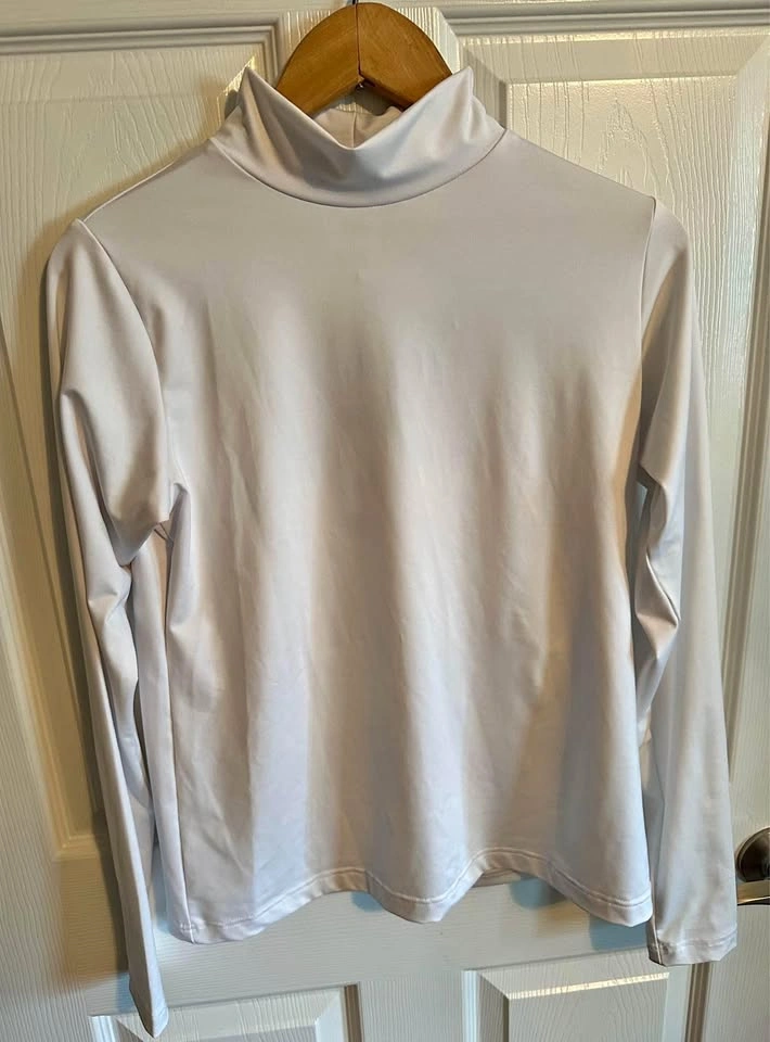 60Mock neck top with full length sleeves 2-way stretch, moisture-wicking fabric made from recycled plastic bottles. Anti-bacterial, UPF50 Made in Canada Size M Flexible Porch PU South Arm