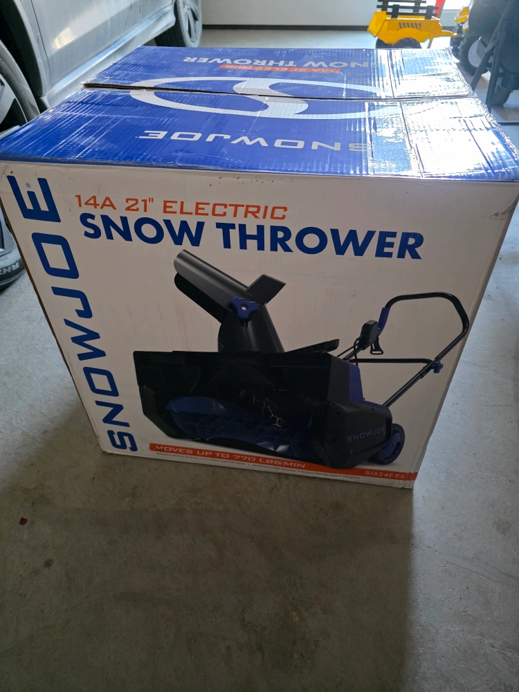 10I'm selling a brand new Snow Joe 14A 21" Electric Snow Thrower! This snow thrower moves up to 770 lbs/min and comes in the original box.
