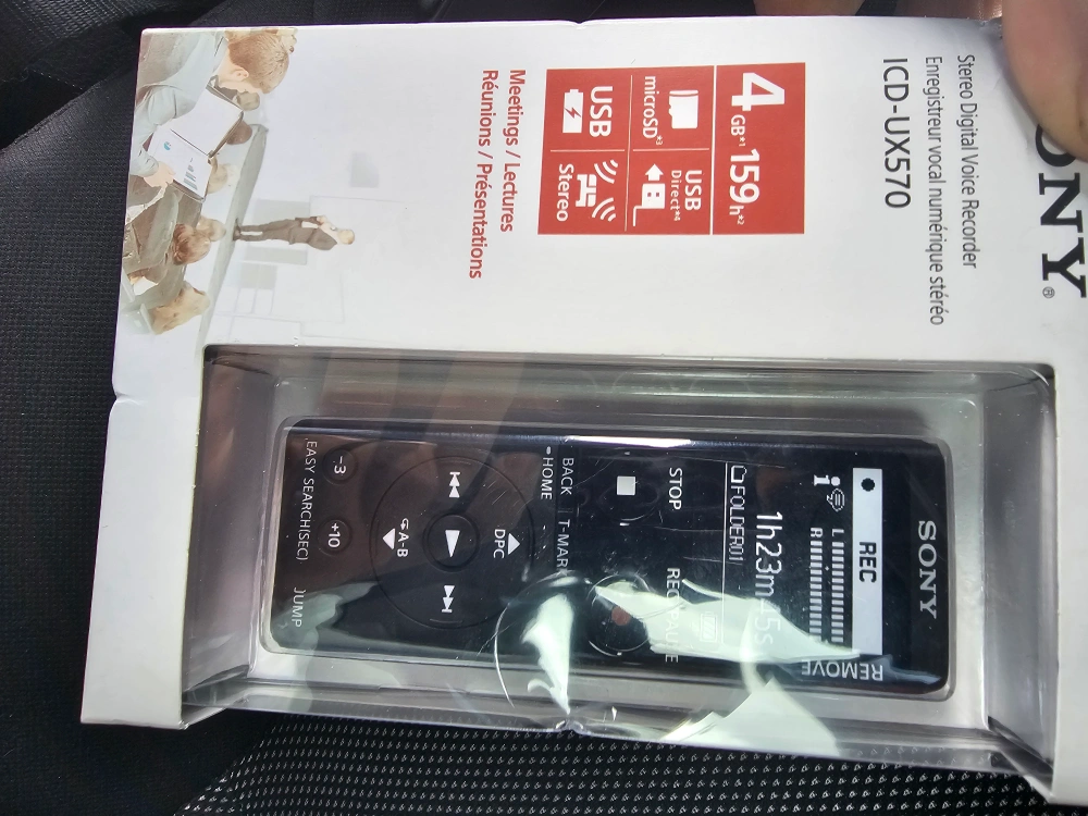 10Selling a brand new Sony ICD-UX570 Stereo Digital Voice Recorder! It comes in its original packaging. Key features: - 4 GB storage - Up to 159 hours of recording time - MicroSD card slot - USB Direct connection for easy file transfer Perfect for meetings, lectures, or general voice recording