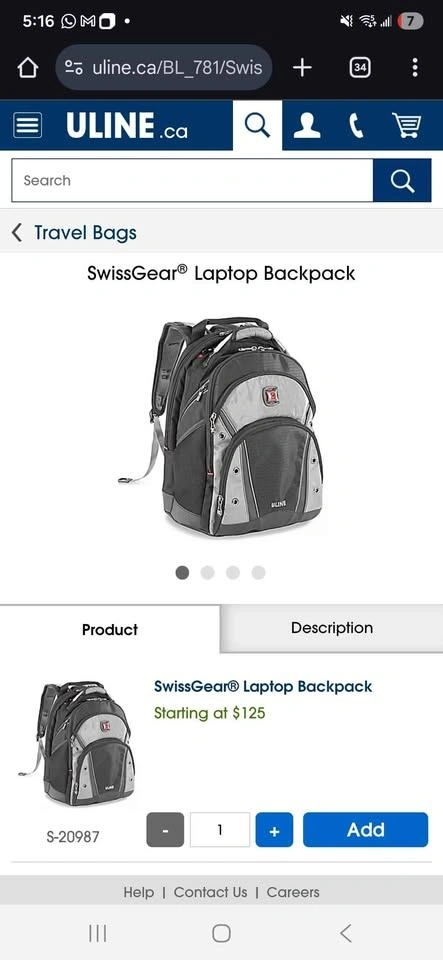 10Completely new ULINE Swiss gear backpack with 3 year warranty and 10% discount coupon on Swiss gear products. MSRP for new is $125 + Tax