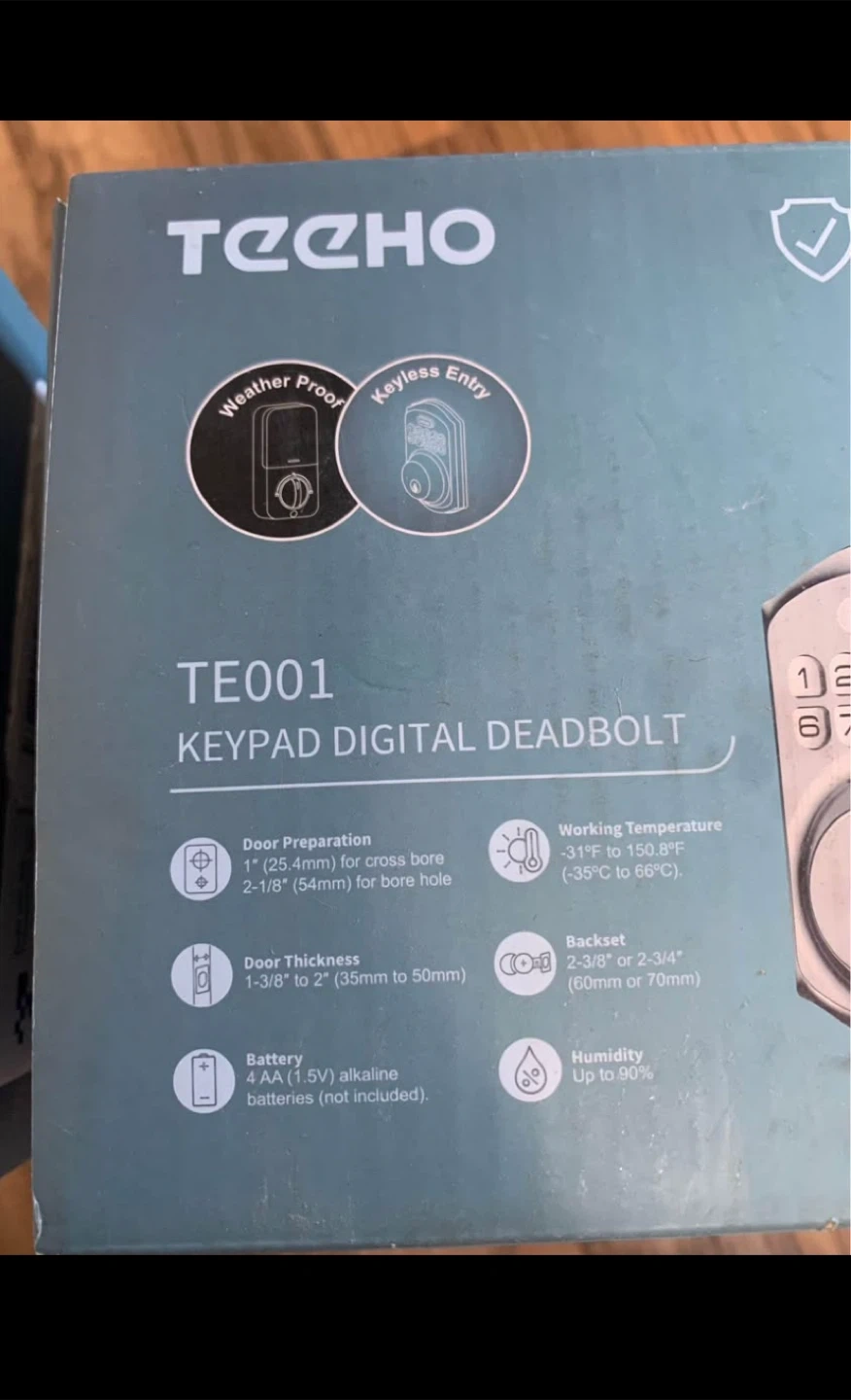 25I have a new Techo keypad deadbolt lock for sale! It comes in its original box with all the included components and instructions. It's a great way to upgrade your home security (Limited stock) (With or without installation)
