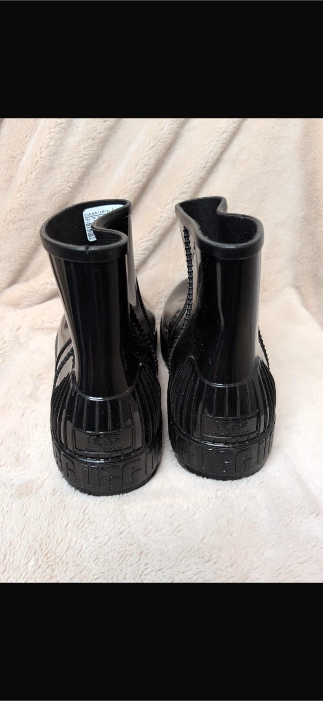 23New! Retails for $162. These are a pair of stylish UGG waterproof rain boots in black. They are in great condition and ready for the rainy season! Waterproof synthetic upper 7mm sheepskin insole TPE Outsole Midsole made with recycled EVA regrind UGG logo woven label on sockliner The Drizlita is a waterproof statement boot made with recycled leftovers from our iconic Classic. Featuring a soft insole lined in our signature sheepskin, this cozy and colorful silhouette makes a statement in any level of downpour.