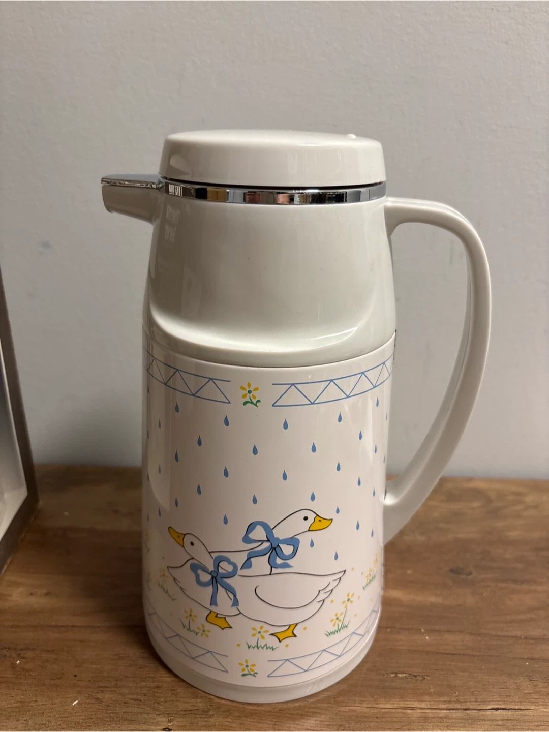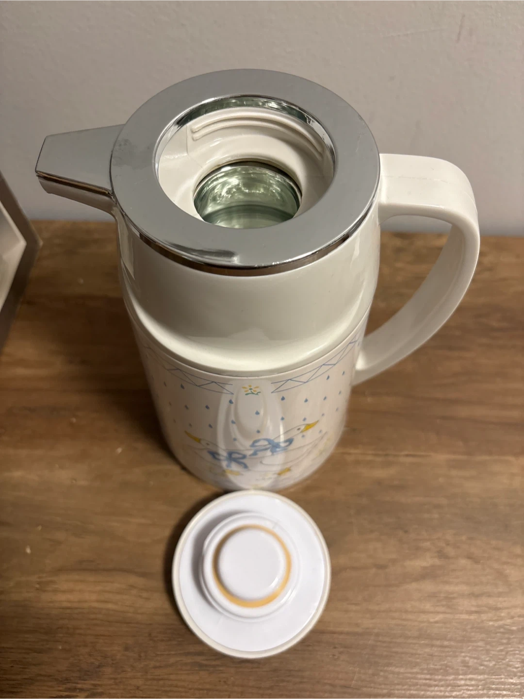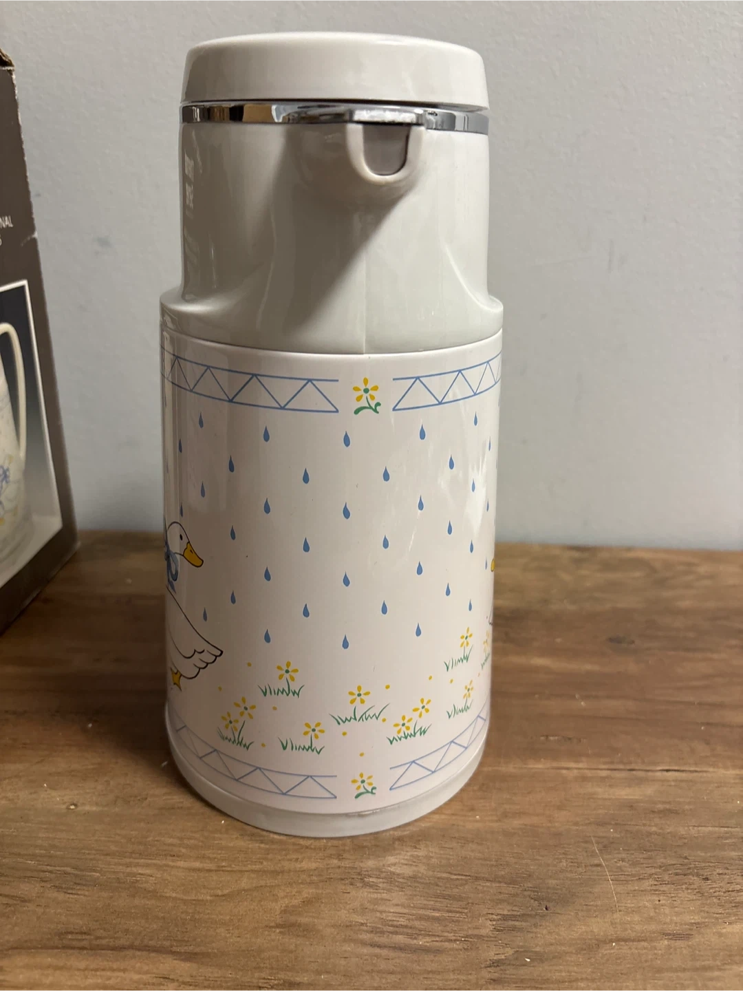 98Keep your hot and cold beverages at the original temperature with this vintage thermal server! It holds one liter and features a cute duck design. The server is fully glass lined, ensuring your drinks stay at their original temperature for hours. Comes with its original box, making it a fantastic gift idea or a charming addition to your kitchen