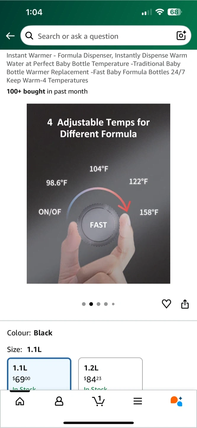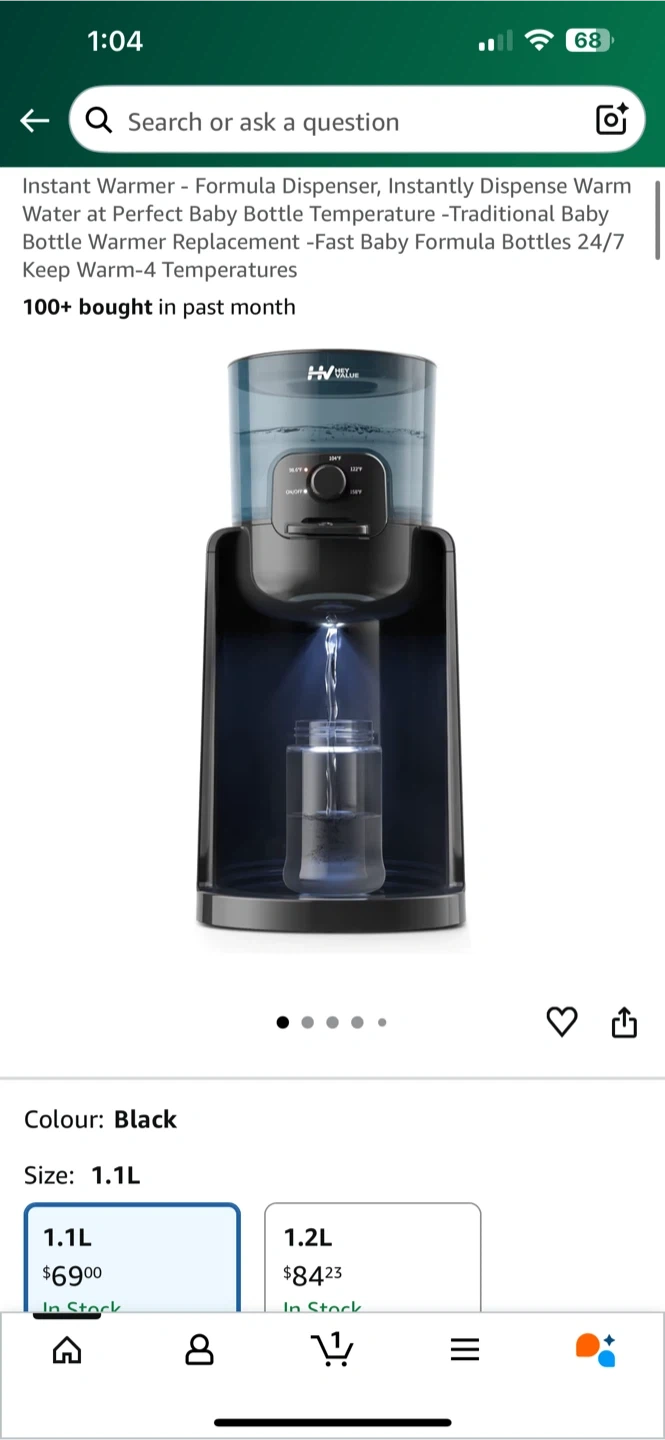 1000+Get warm water instantly with this HeyValue formula dispenser! It's a traditional baby bottle warmer replacement that keeps bottles warm 24/7. - Dispenses warm water instantly - Keeps warm day & night - Night light makes night feeding a breeze - Customize with 4 temperatures - Detachable - No plastic smell - 400W Fast Warming - Safe - Works with most brands of bottles Size: 1.1L Colour: Black This is brand new without box