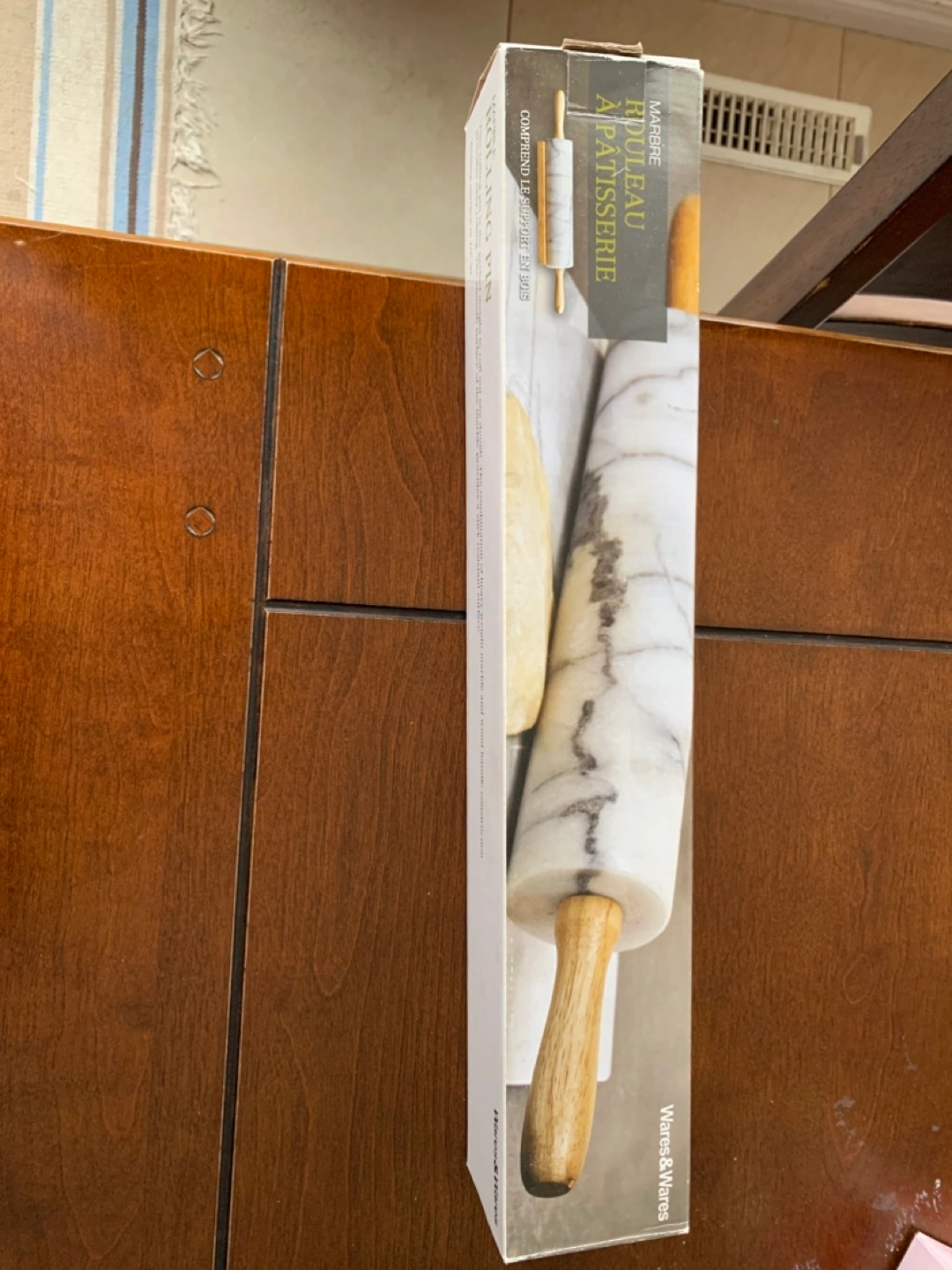 48Brand new marble rolling pin. Includes wooden stand. Perfect for baking and pastry making. Still in original packaging.