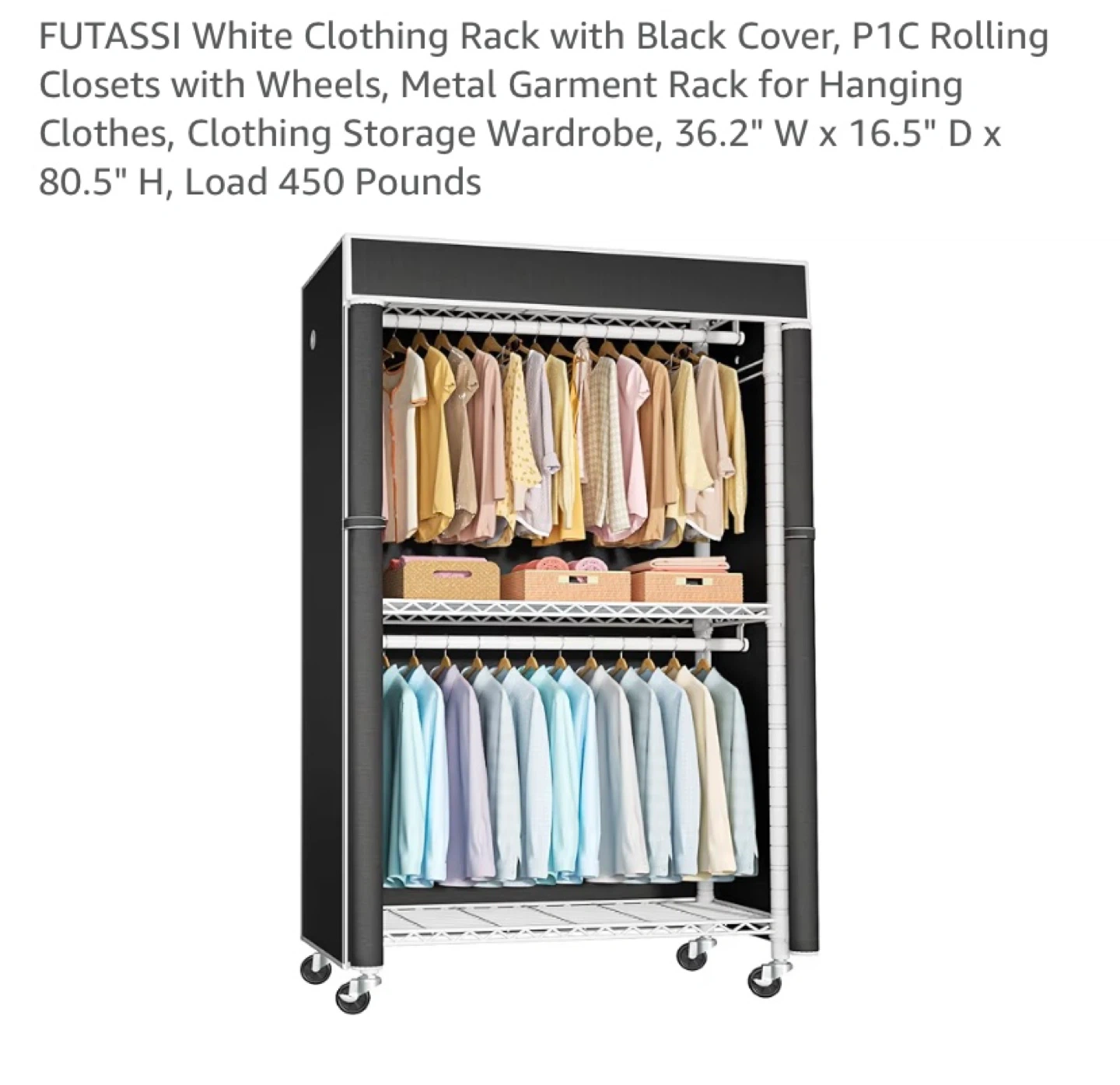 291Brand new factory sealed White Clothing Rack with Black Cover 36.2" W x 16.5" D x 80.5" H Load 450 Pounds $90 (retail $170 plus tax) Pickup in Whitby