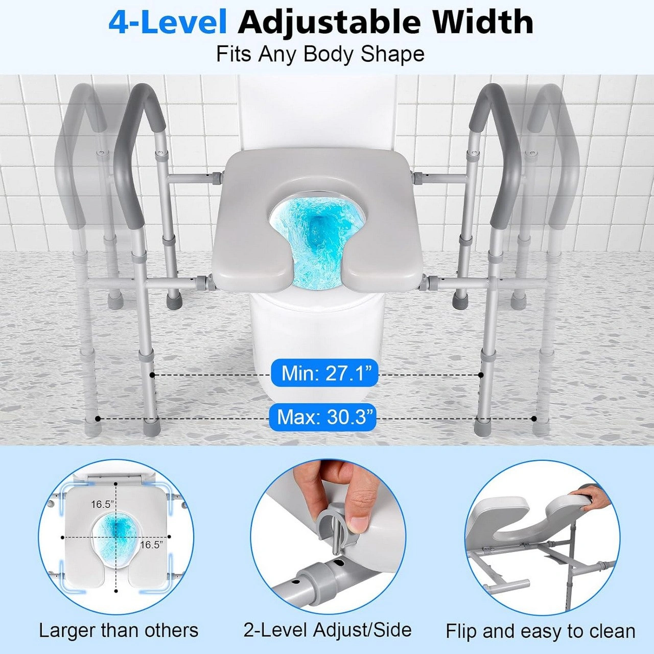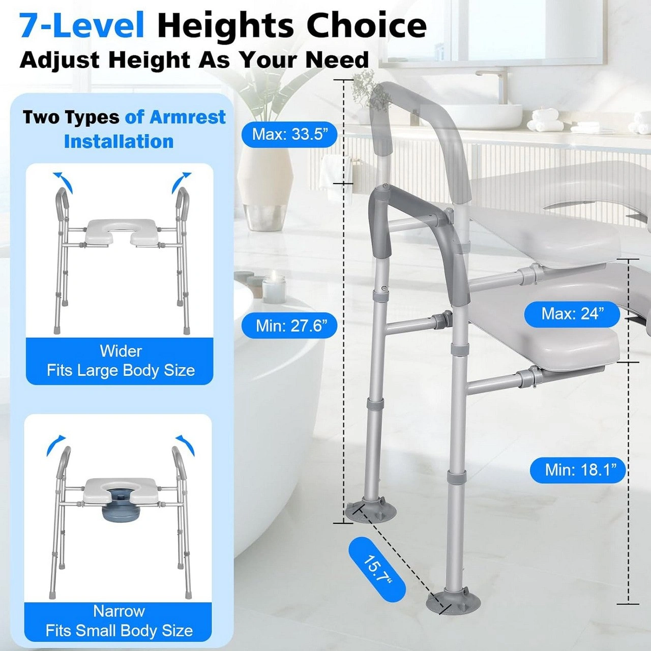 * New, factory-sealed * Supports up to 500 lb * Splash-proof design * 7 Heights from 18.1” to 24” * 4 Widths from 27.6” to 33.5” * Padded grip * 2 installation options * Fits all toilets * Can be used as a shower chair Current Amazon.ca price for this brand new Takuyada Width & Height Adjustable Raised Toilet Seat with Handles: $119.99. You get this brand new, never used item at a really good price and pickup for free. The item has never been opened, is factory sealed and brand new. Cash only. Pickup in Etobicoke or Mississauga: Email us to make arrangements. +++++ Takuyada Toilet Seat Riser - Adjustable Raised Toilet Seat - Toilet Seat with Handles - Handicap Toilet Seat - Elderly Toilet Seat - Raised Toilet Seat for Seniors - Toilet Seat Riser with Arms - Elevated Toilet Seat - Splash-Proof Toilet Seat Riser - 500LBS Toilet Seat Riser - Adjustable Height Toilet Seat - Adjustable Width Toilet Seat - Padded Toilet Seat Handles - Multi-Use Toilet Seat - Bedside Commode - Shower Chair with Handles - Toilet Aid for Elderly - Non-Slip Toilet Riser - Tool-Free Toilet Seat Installation - Elderly Toilet Support - Sitting & Standing Aid - Senior Toilet Lifter - Toilet Safety Rails - 4-in-1 Toilet Seat - Toilet Seat with Armrests
