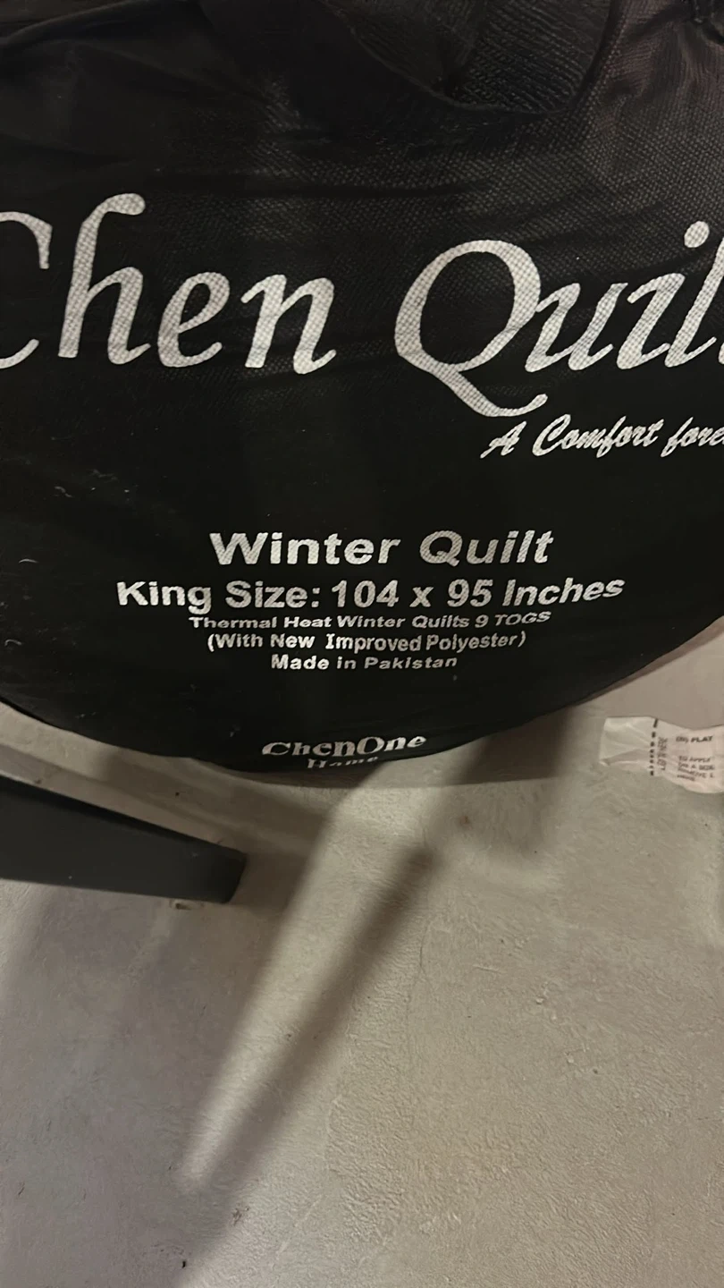 16Never opened .. Selling a ChenOne Home winter quilt in king size (104 x 95 inches)! It's a thermal heat quilt with 9 TOGS, made with new improved polyester. Made in Pakistan. A comfort forever!