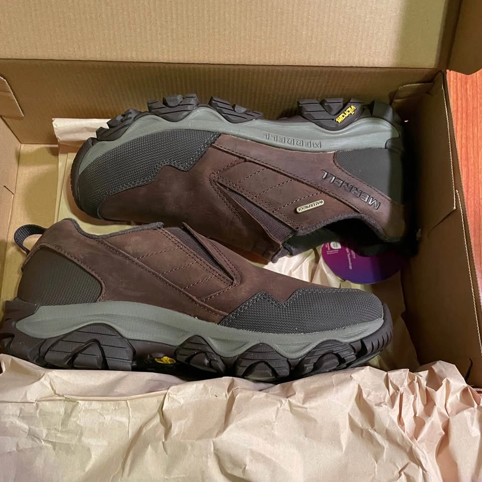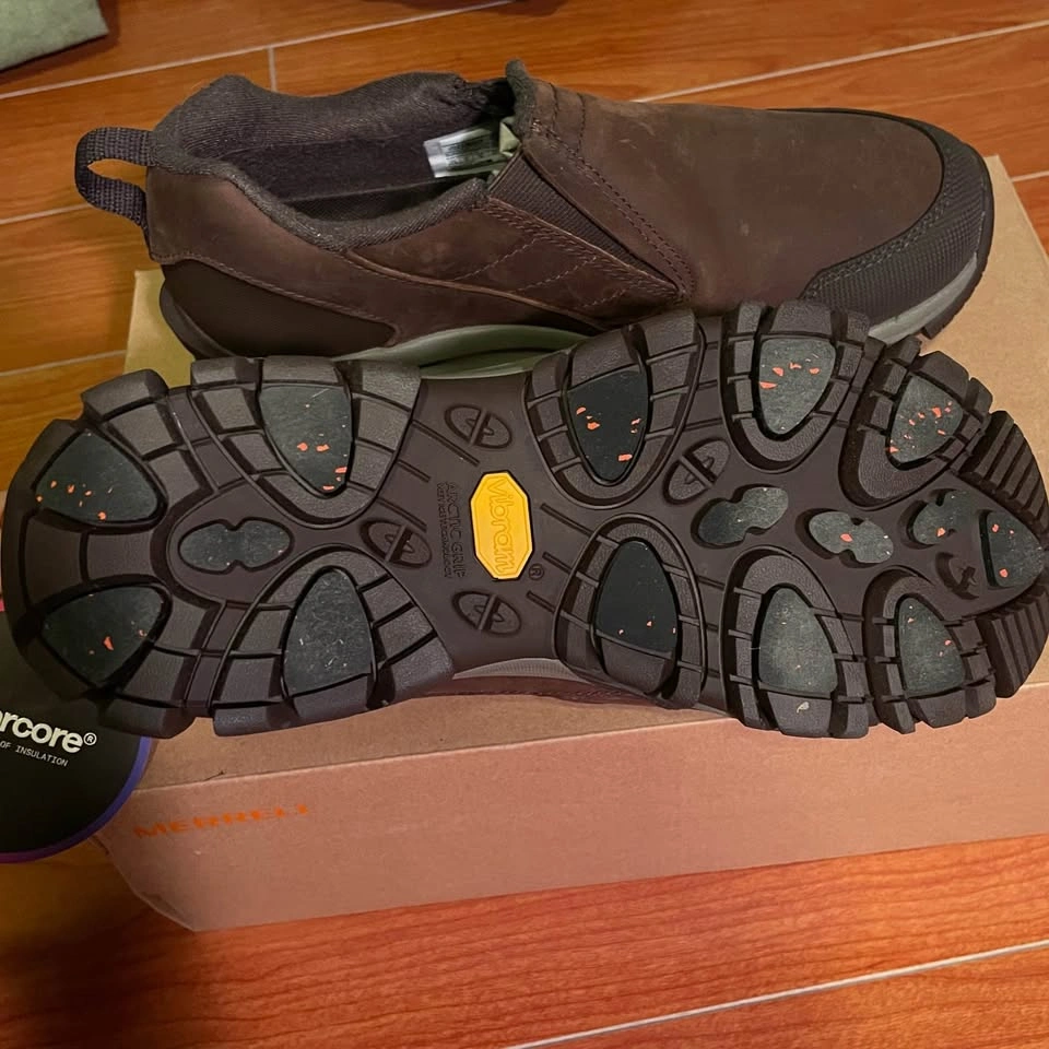 59Pick up at Don Mils & Steeles *Price is firm. Just missed the return deadline Durable waterproof slip-on shoes designed for active lifestyles. Perfect for winter outdoor activities or everyday city wear, featuring Vibram Arctic Grip for superior traction on snow and ice. Size: Women’s 8.5 (Wide Width) Condition: Brand NEW Color: Cinnamon Model: J037402W Originally paid $226. This color and size are currently sold out online. A versatile winter moc to keep you dry and delivers traction in any conditions mother nature can throw at you. Insulation: 200g synthetic lightweight, low bulk insulation for warmth and comfort. Complete with Solarcore® Aerogel insole provides underfoot superior warmth while being extremely flexible and ultra-thin. Waterproofing: Waterproof full grain leather upper, complete with a waterproof membrane seals out water and lets moisture escape. Traction: Vibram Arctic Grip All Terrain outsole designed to effectively extend the winter traction season, due to the enhanced durability and versatility. Comfort Features: • Double stretch gore for easy on and off • Protective and abrasion resistant rubber toe cap • Cleansport NXT treated for natural odor control • Merrell Air Cushion in the heel absorbs shock and adds stability • Molded nylon arch shank • Super Rebound Compound midsole provides durable shock absorption to help reduce torque and allow for a smooth transition into the midfoot