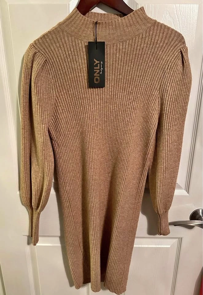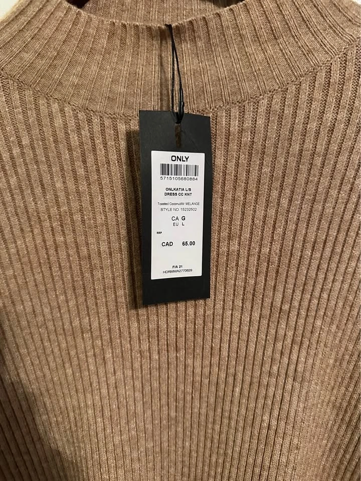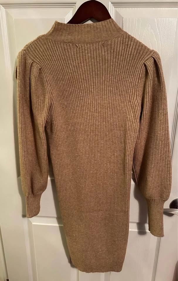 This gorgeous knit dress features a super flattering mock neck, puffed shoulders, and cuffed balloon sleeves. Size Large 50% Viscose, 27% Nylon, 23% Polyester Brand-Purchased from The Bay Retail Price $45 Flexible Porch PU South Arm