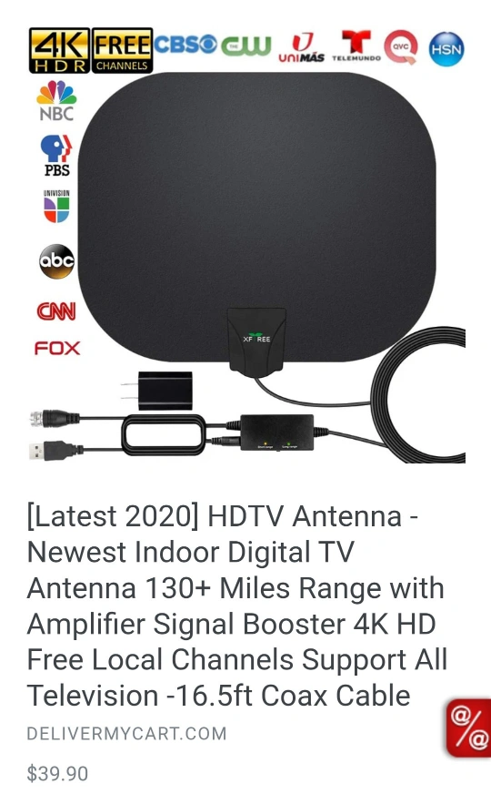 Newest indoor digital TV antenna with amplifier signal booster. 4K HD free local channels. 16.5ft coaxial cable. Up to 130+ mile range. Cancel your cable bill and save money. Stop paying monthly bills. Buy this one time antenna and you'll get to watch several channels for free every month. Times are rough financially for many people, so this is one way to cut expenses. - see images for details - click image to enlarge - scroll to left to see more images PLEASE "FOLLOW" ME, AS I OFFER A VARIETY OF DIFFERENT ITEMS AT FANTASTIC PRICES! HOPE TO SEE YOU SOON! THANKS FOR YOUR TIME . Exact Cash Please - If you need change please let me know ahead of time so I can get change. BM23 S00661