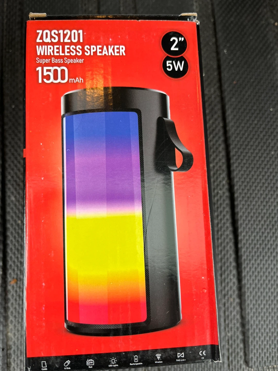 Selling a brand new ZQS1201 wireless super bass speaker! It's still in its original packaging and has never been used. Key specs: - 2-inch speaker - 5W output power - 1500mAh battery capacity