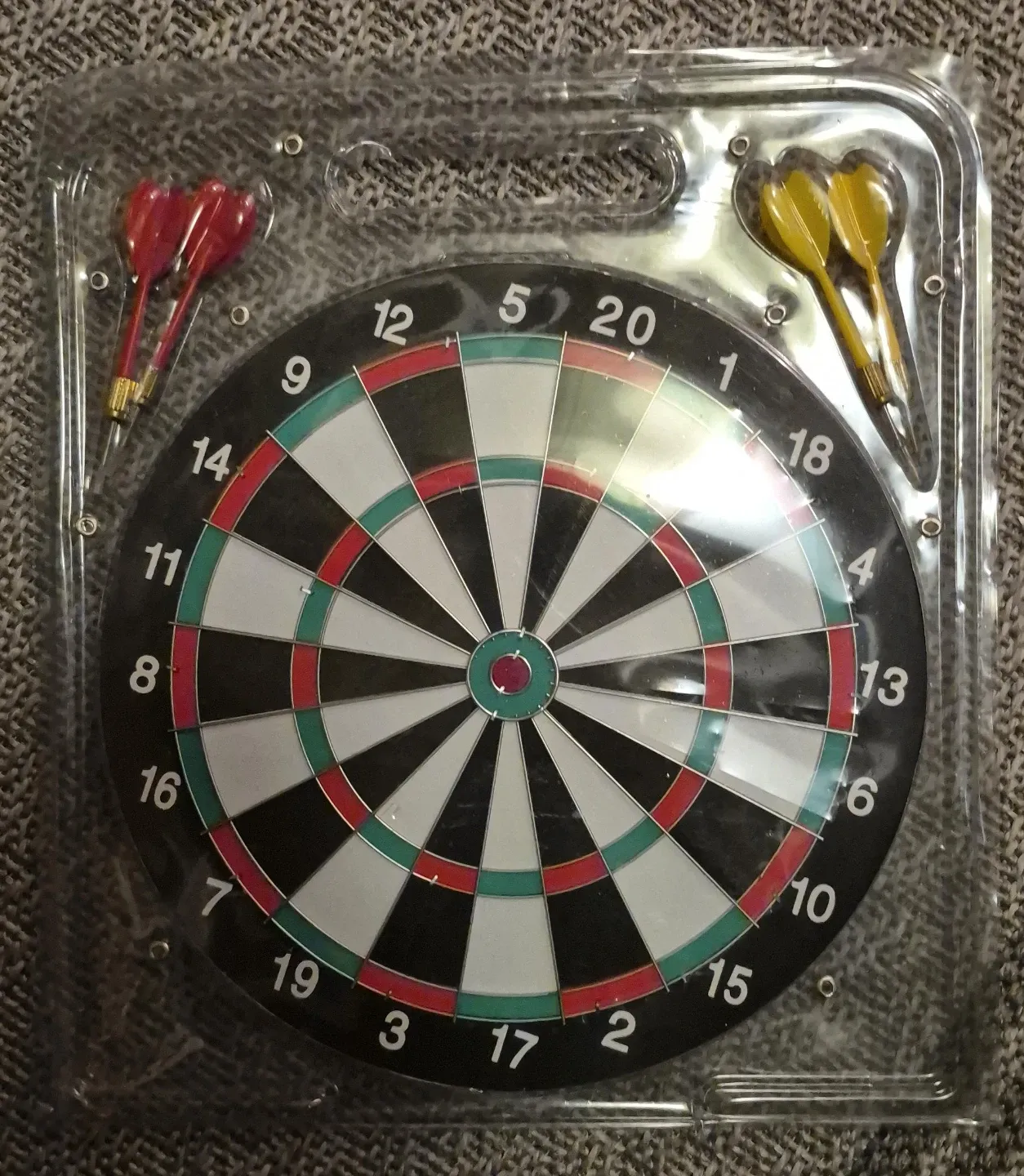 Selling a brand new dartboard still sealed in its original packaging! It comes with a set of darts so you're ready to play right away. Perfect for some fun at home