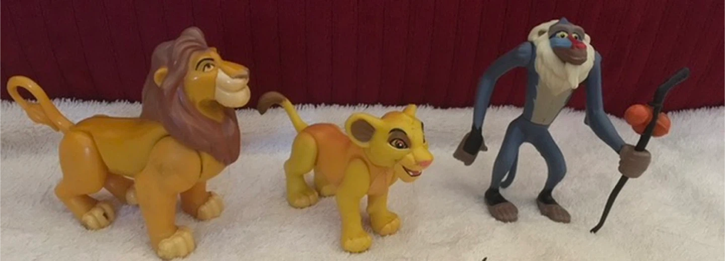 Selling a set of The Lion King figures! Includes Simba, Nala, and Rafiki. They're in good condition and ready for a new home with a Lion King fan