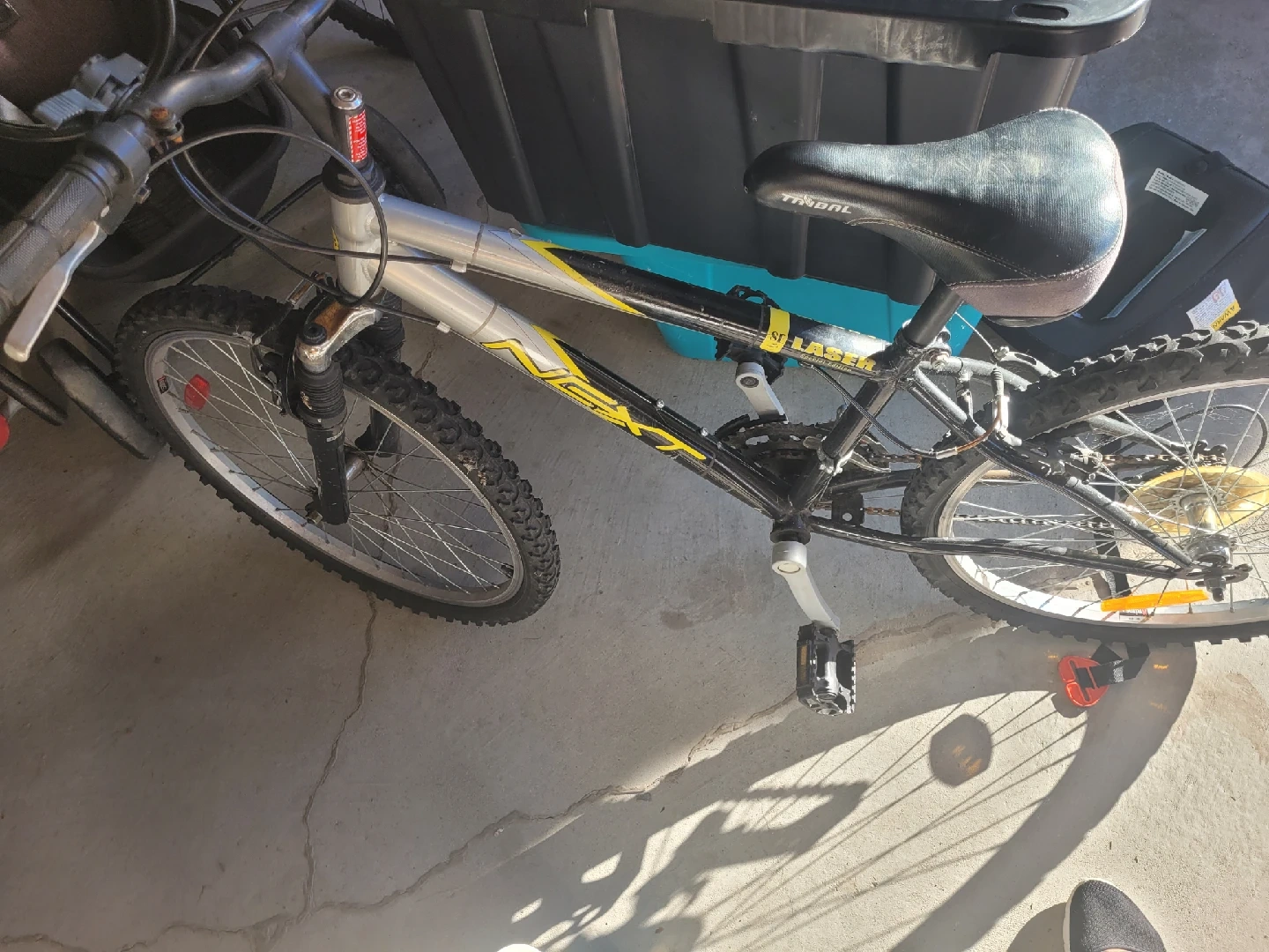 10Selling a used Next SF Laser mountain bike. It has some wear and tear but is still in good working condition. Great for getting around town or hitting some trails!