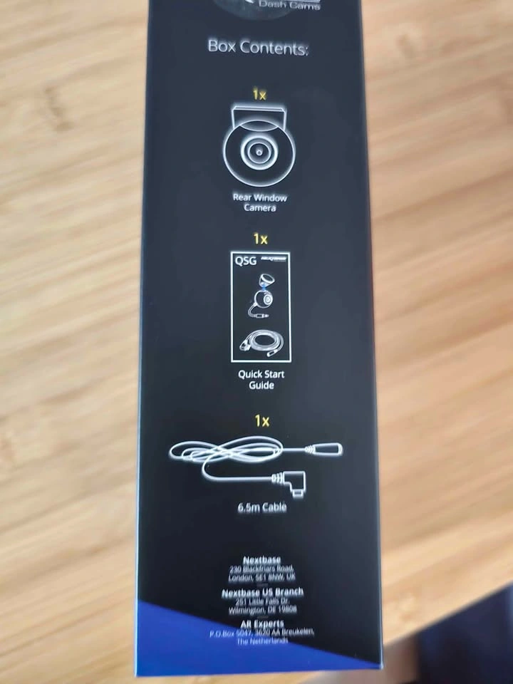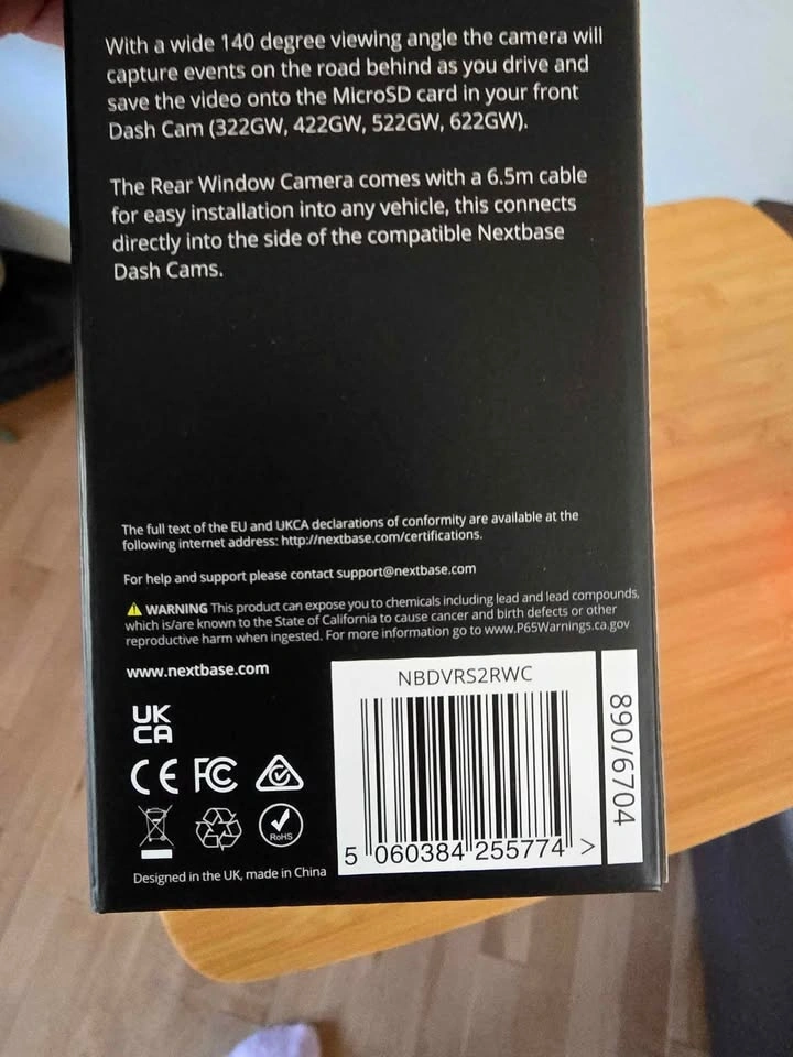 Never opened Nextbase rear "dash" cam. Works with the dashcams in pic. Pickup in south Bower or possibly Sylvan