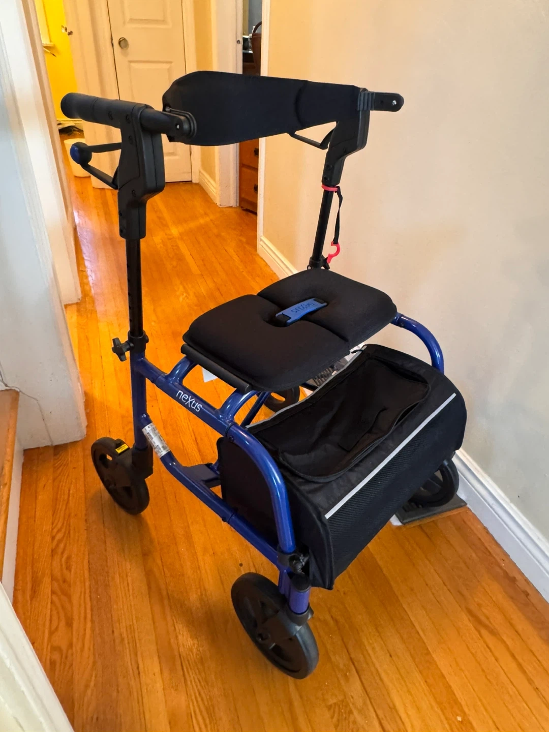 60Selling a Nexus 3 Low Blue rollator walker. It's in great shape, only used twice in walking tests, basically new. Key features: - Weight capacity: 200kg (441 lb) - Height: 59.5cm (23.5") - Width: 54cm (21.3") It also comes with a convenient storage bag underneath the seat