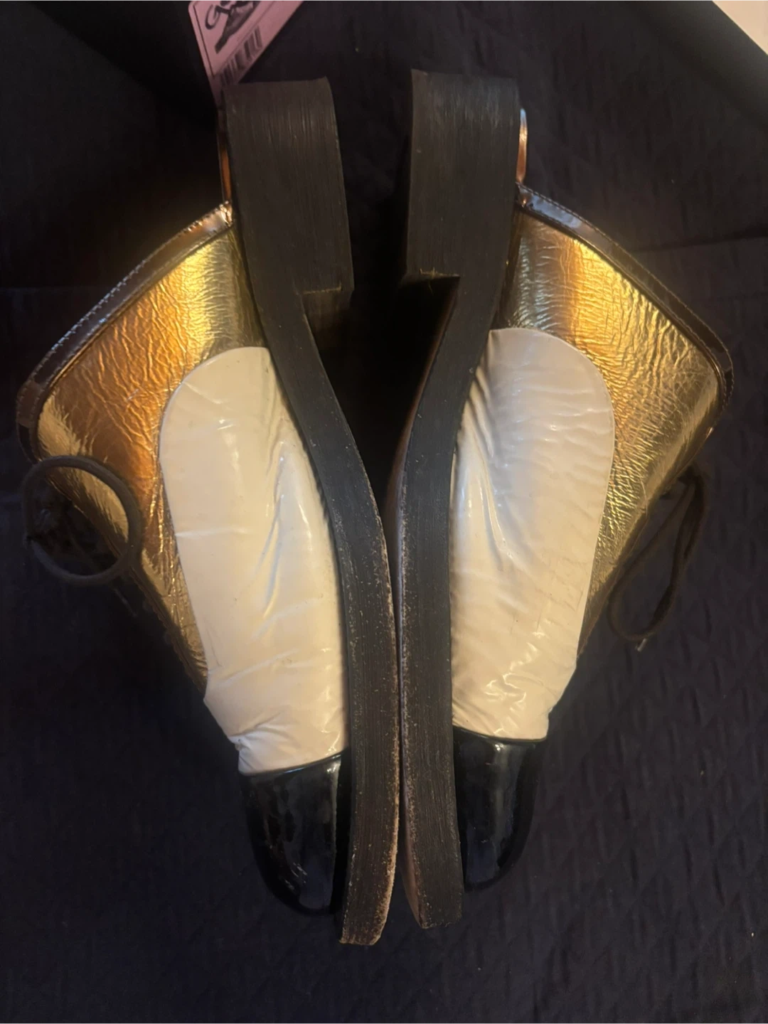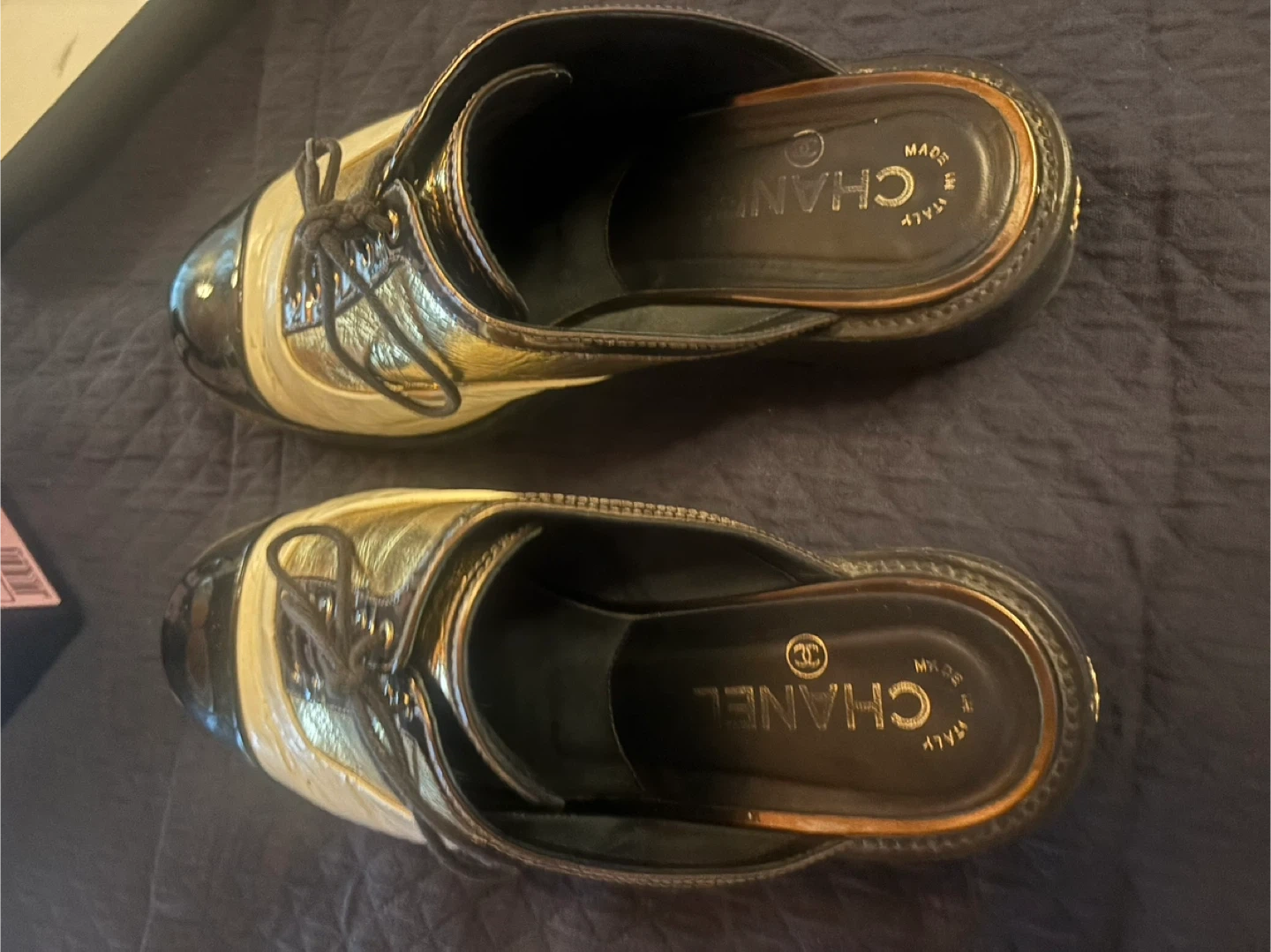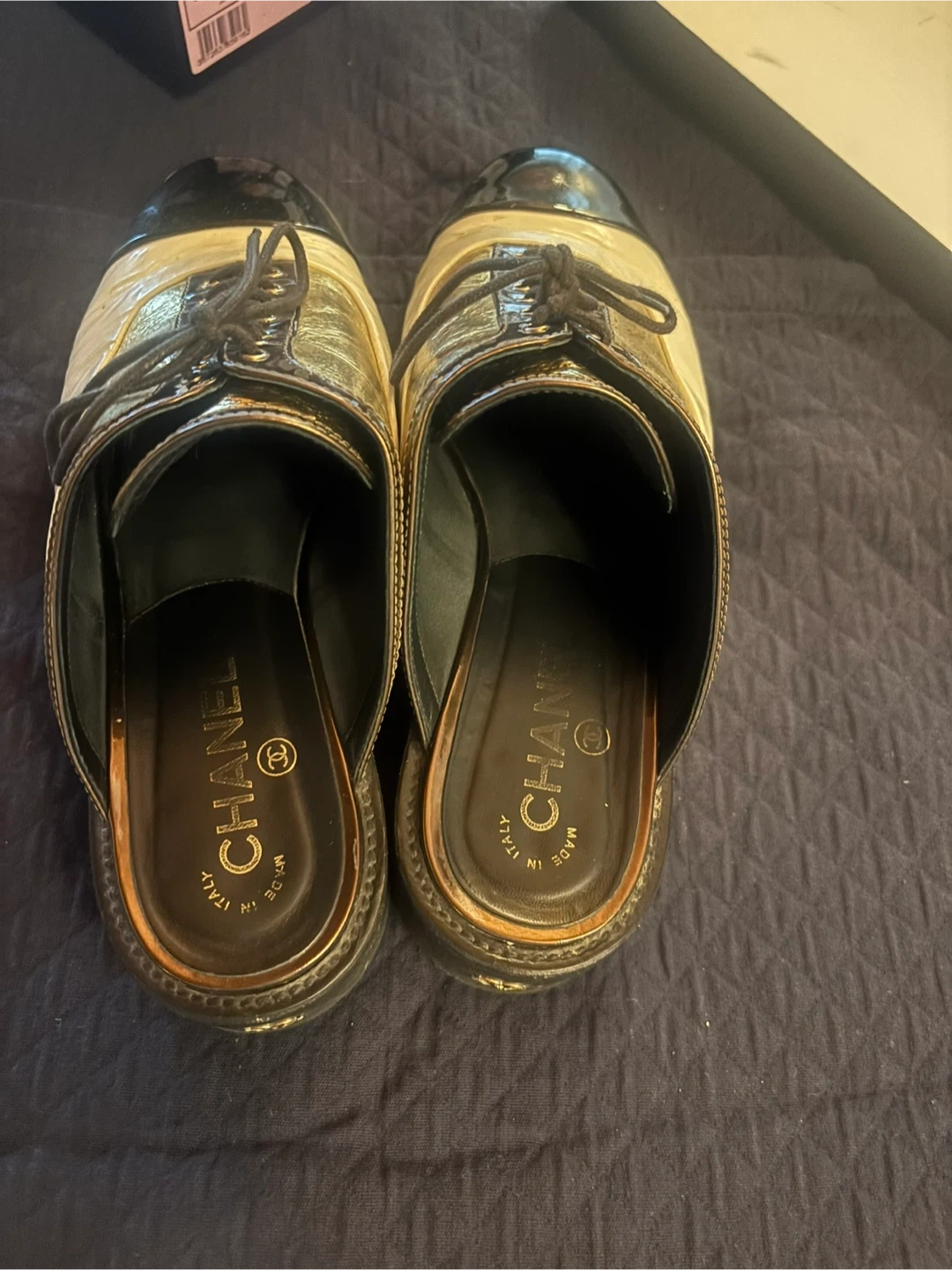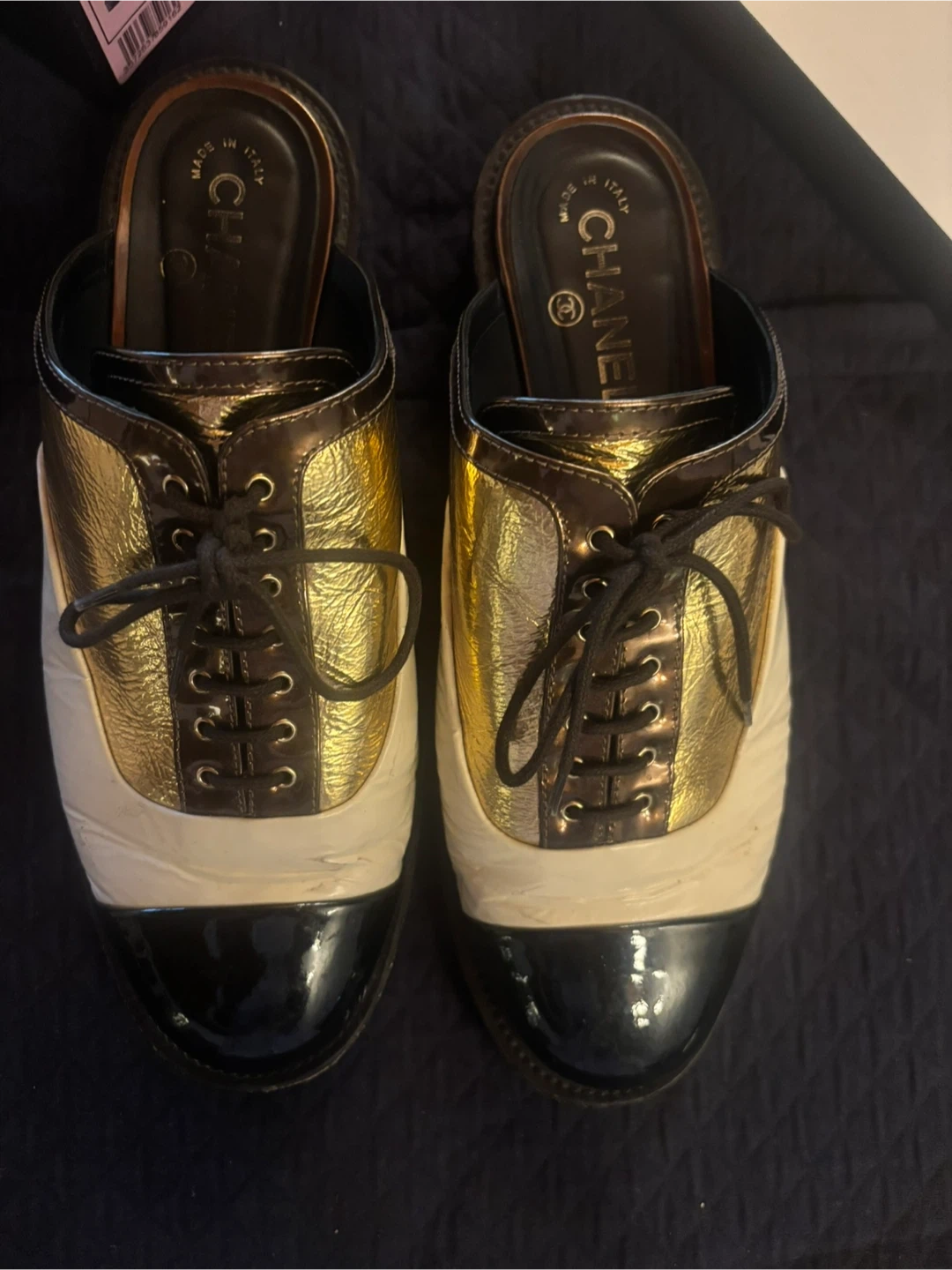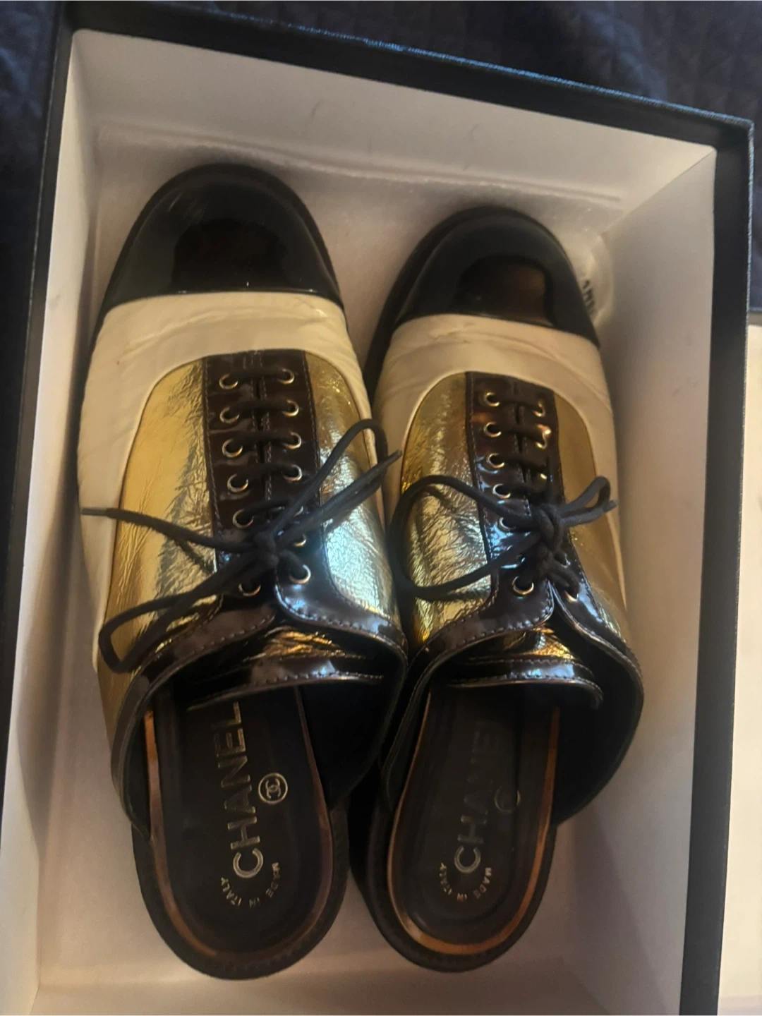 Chanel Gold & Black Mule Shoes