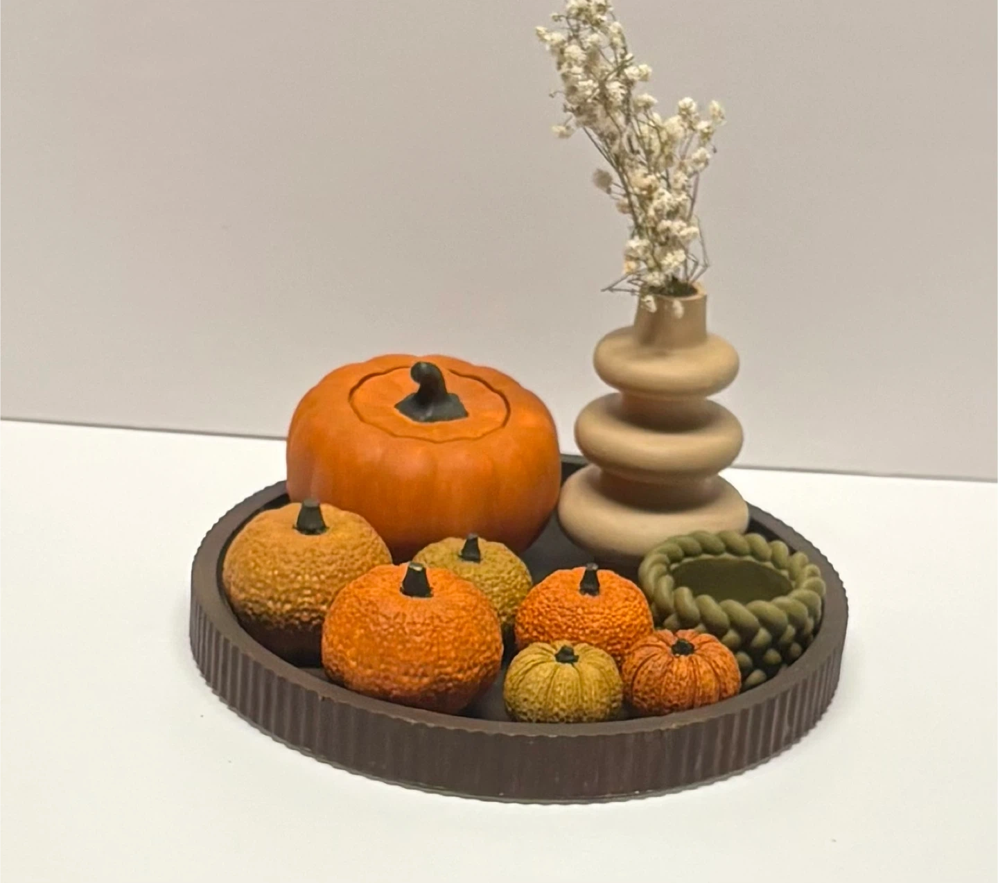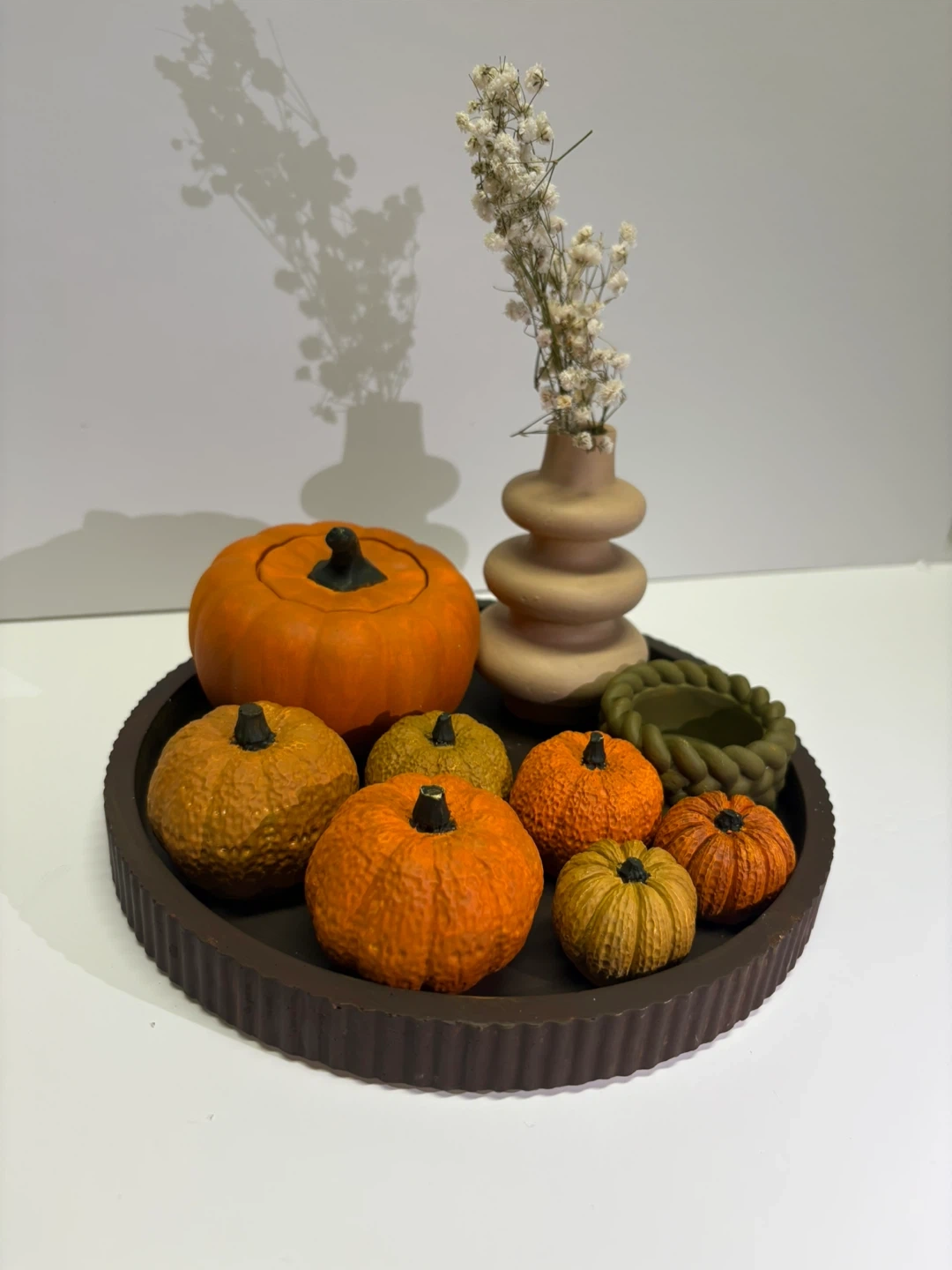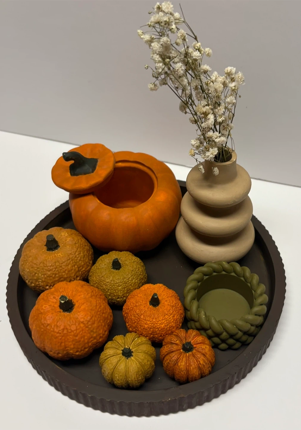 The large pumpkin acts as a stylish trinket jar, perfect for holding jewelry, candy, keys, or simply hiding clutter. The round tray is ideal for displaying candles, keys, or small essentials.