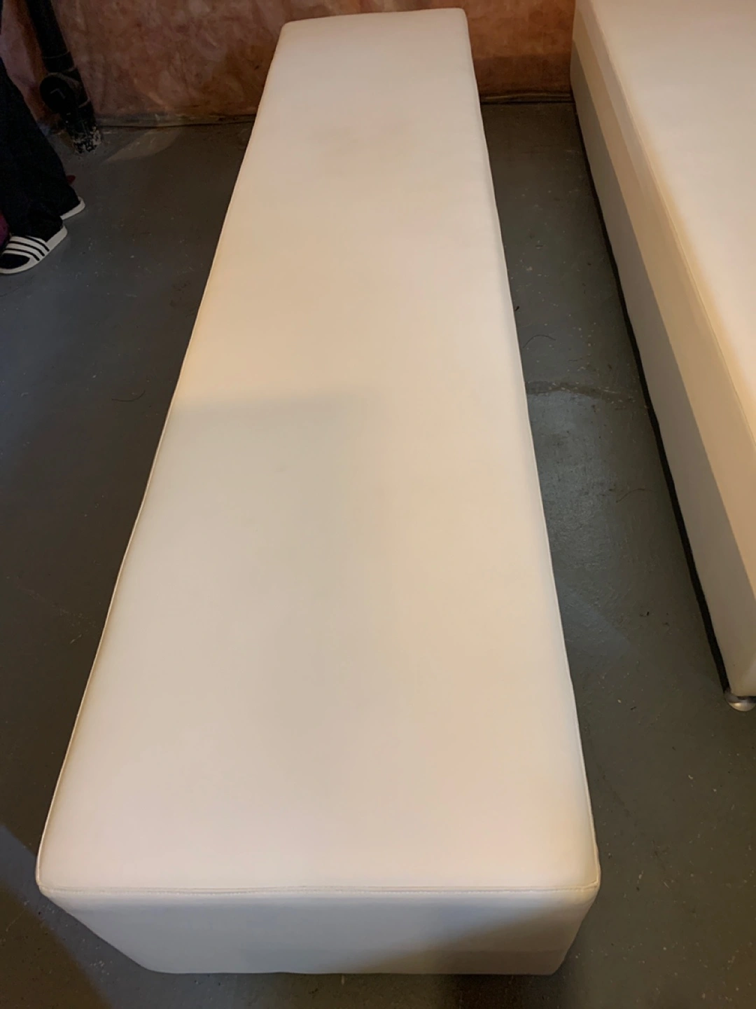Selling 2 white ottoman benches. It's in good condition and would be a great addition to any living room, business space too. Like new condition with white vinyl material, $250 each