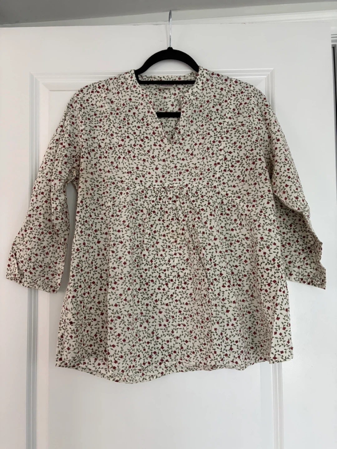 Here's a cute Suvasa blouse with a floral pattern! It's a size L and in great condition. Perfect for adding a touch of floral charm to your wardrobe