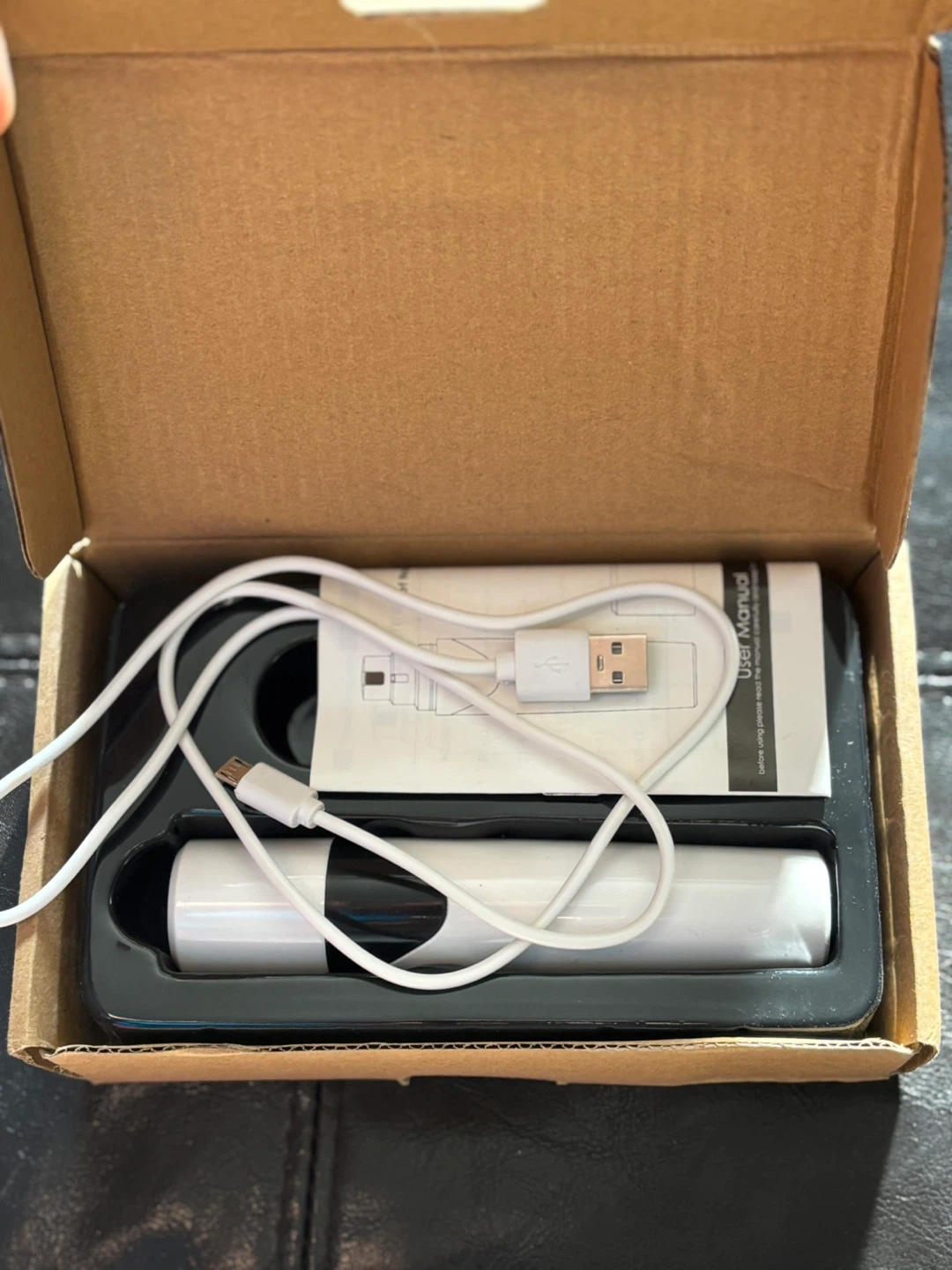 Pet nail grinder with USB charging and detachable grinding wheel. It's designed for low vibration and noise with ergonomic handle features and cordless operation. Includes user manual and USB cable.