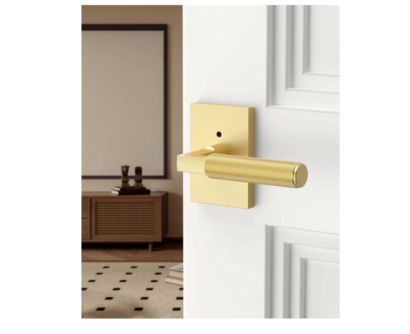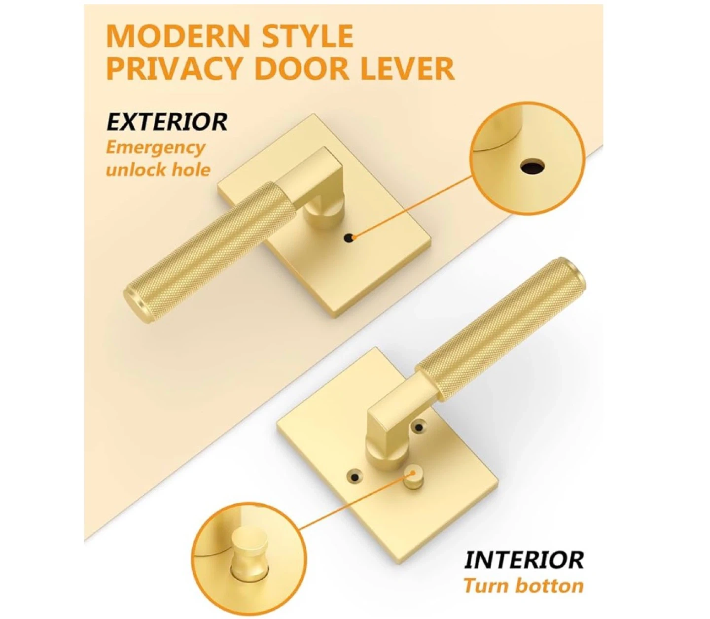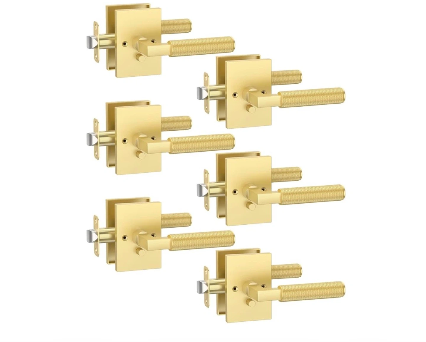 6 Pack Brushed Gold Privacy Door Handles, Door Lever with Door Knobs Indoor for Bedroom or Bathroom, Heavy Duty Door Handles Interior with Locks for Left Right Sided Doors