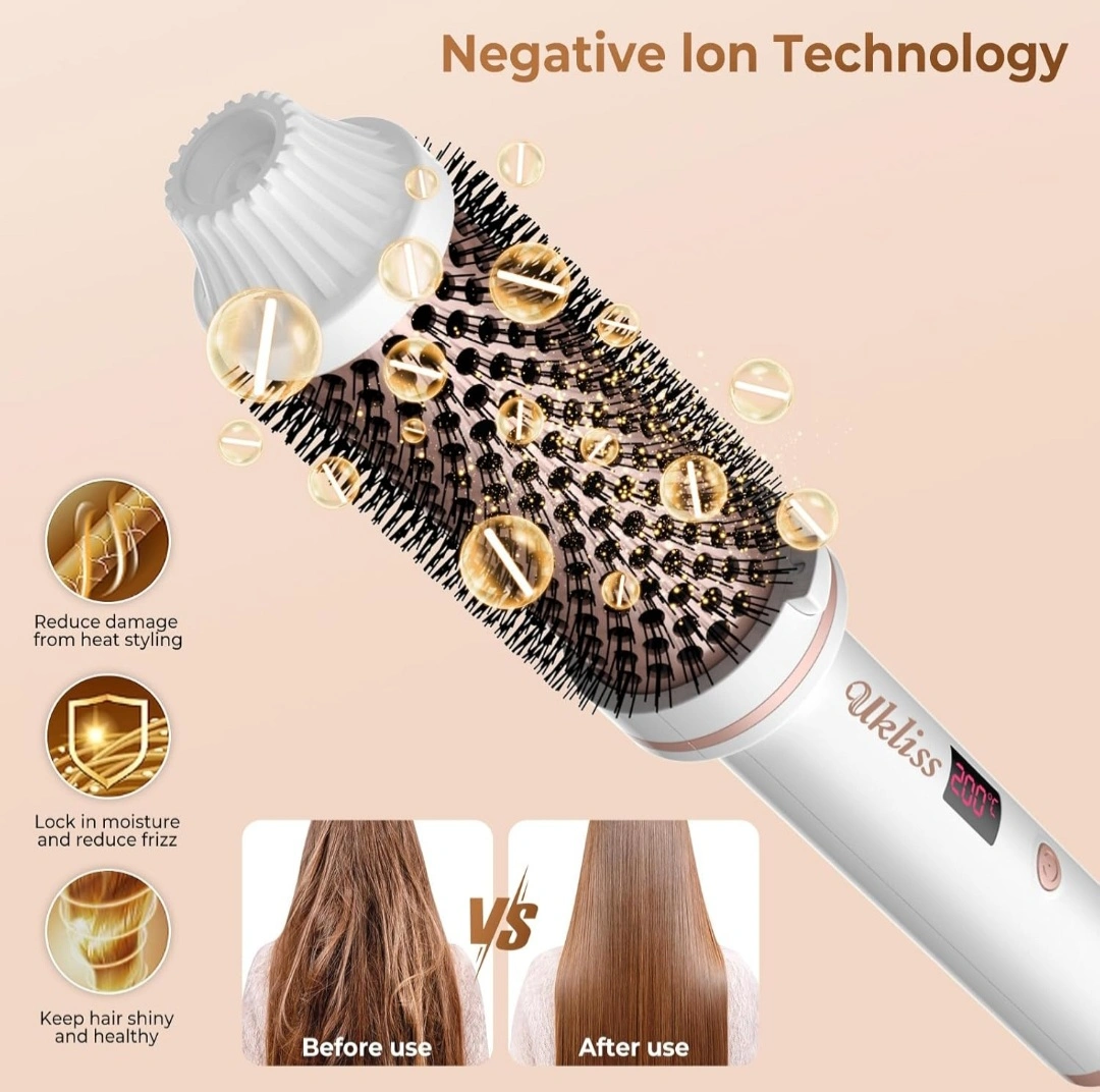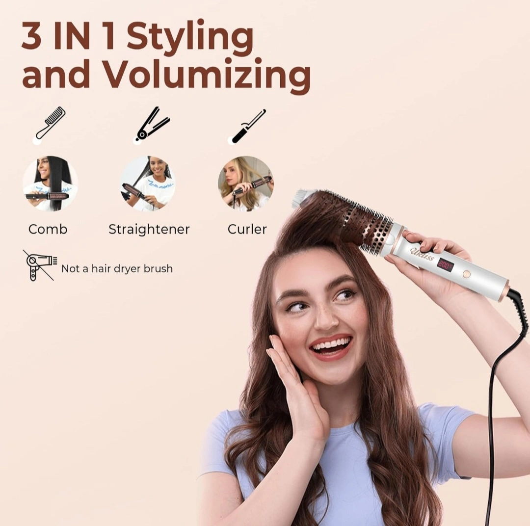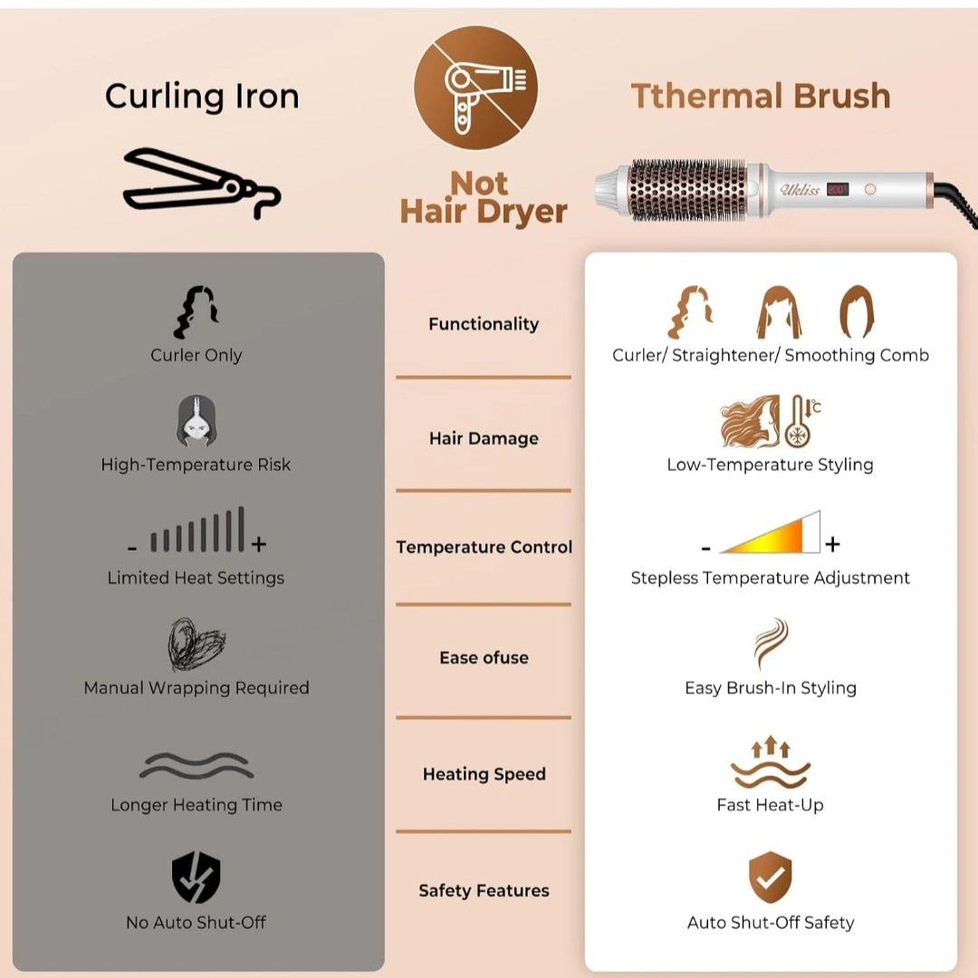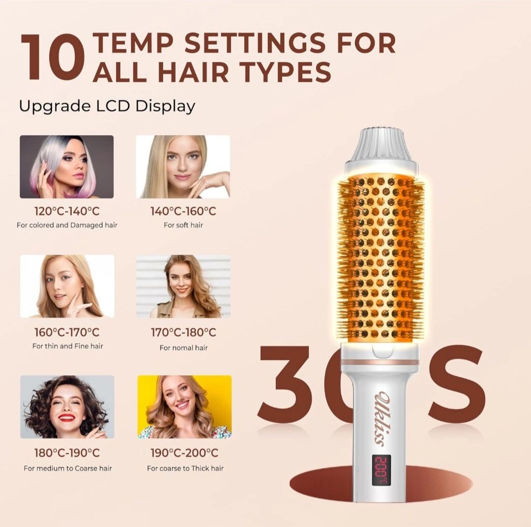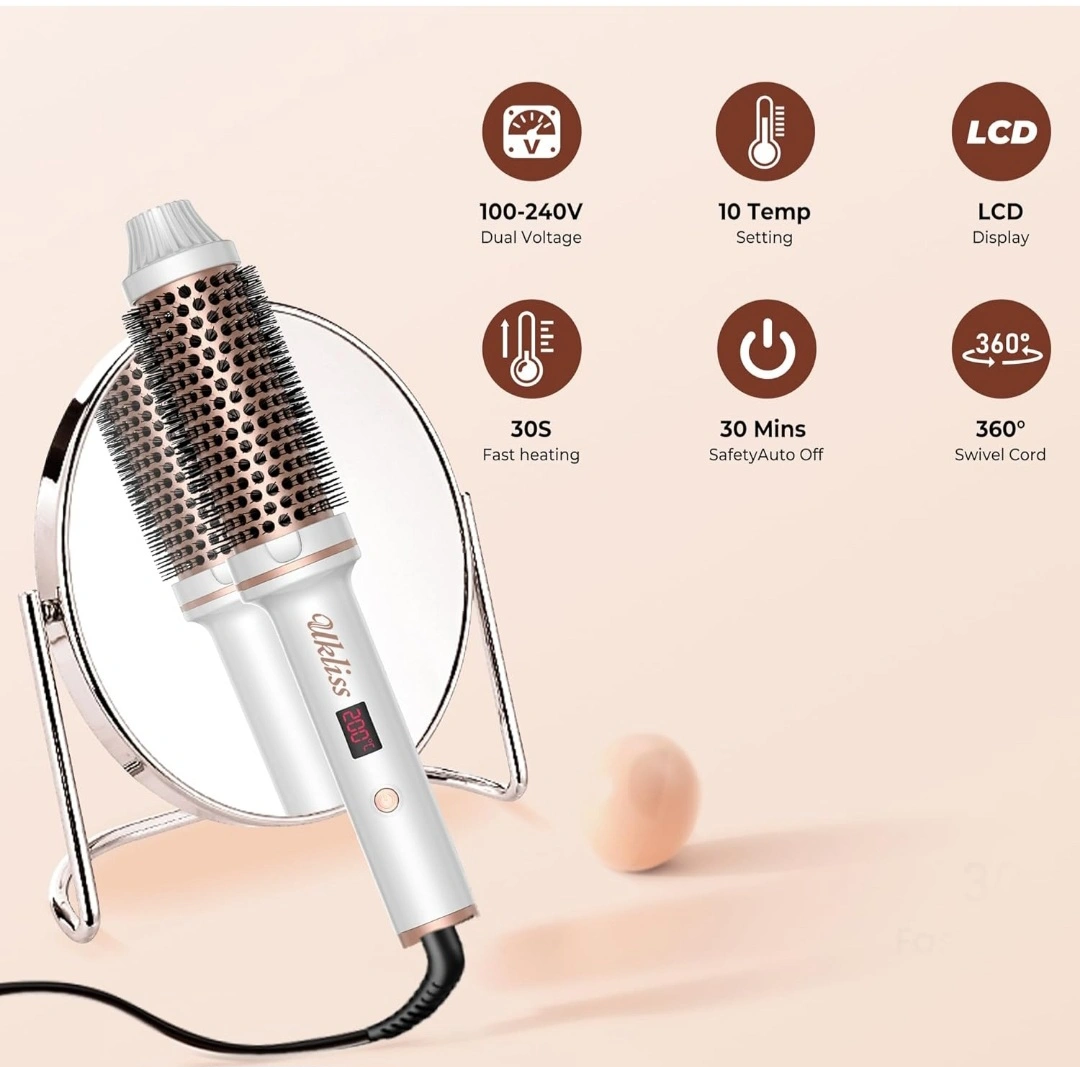 Thermal Brush,1.5 inch Heated Round Brush,for Hair Straightening, Curling Brush 2 in 1 Styler Tools, Curling Iron Brush with 10 Temperature Control,Dual Voltage for Travel
