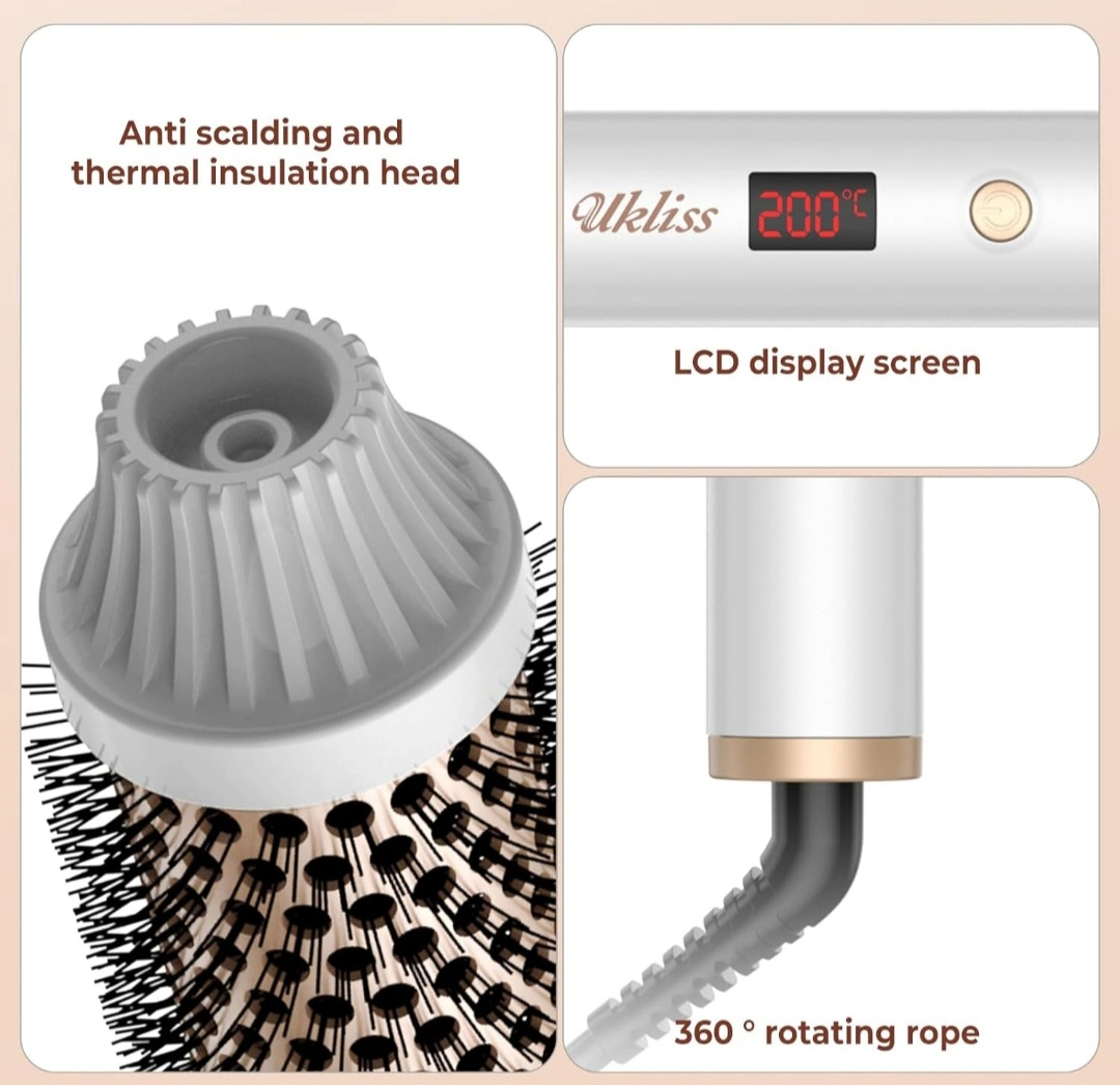 Thermal Brush,1.5 inch Heated Round Brush,for Hair Straightening, Curling Brush 2 in 1 Styler Tools, Curling Iron Brush with 10 Temperature Control,Dual Voltage for Travel