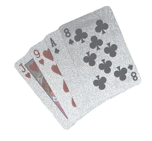 Goldtone and Silvertone playing cards with a $100 Canadian dollar print. The card set is in excellent condition and includes 2 joker cards.