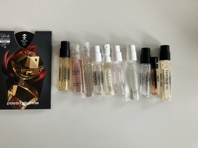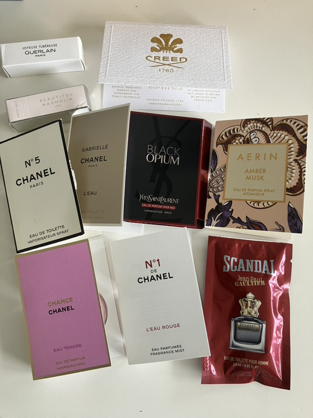 Set of 11 perfume samples in various sizes. New and slightly used.