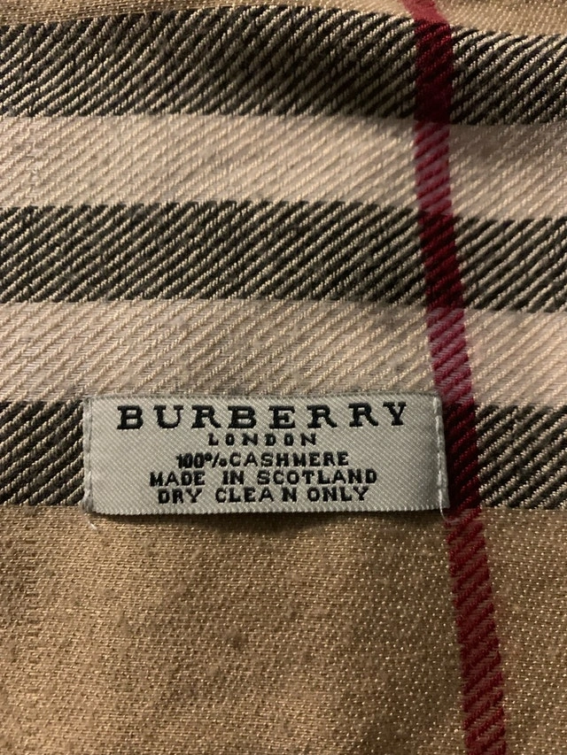 Add a touch of luxury to your wardrobe with this stylish Burberry scarf, made from 100% cashmere in Scotland. This scarf features the iconic Burberry check pattern. It is a used item, but it still has lots of life left! Grab this iconic scarf at a fraction of the retail price. Material: 100% Cashmere. Made in Scotland. Design: Classic Burberry check. Let me know if you're interested!