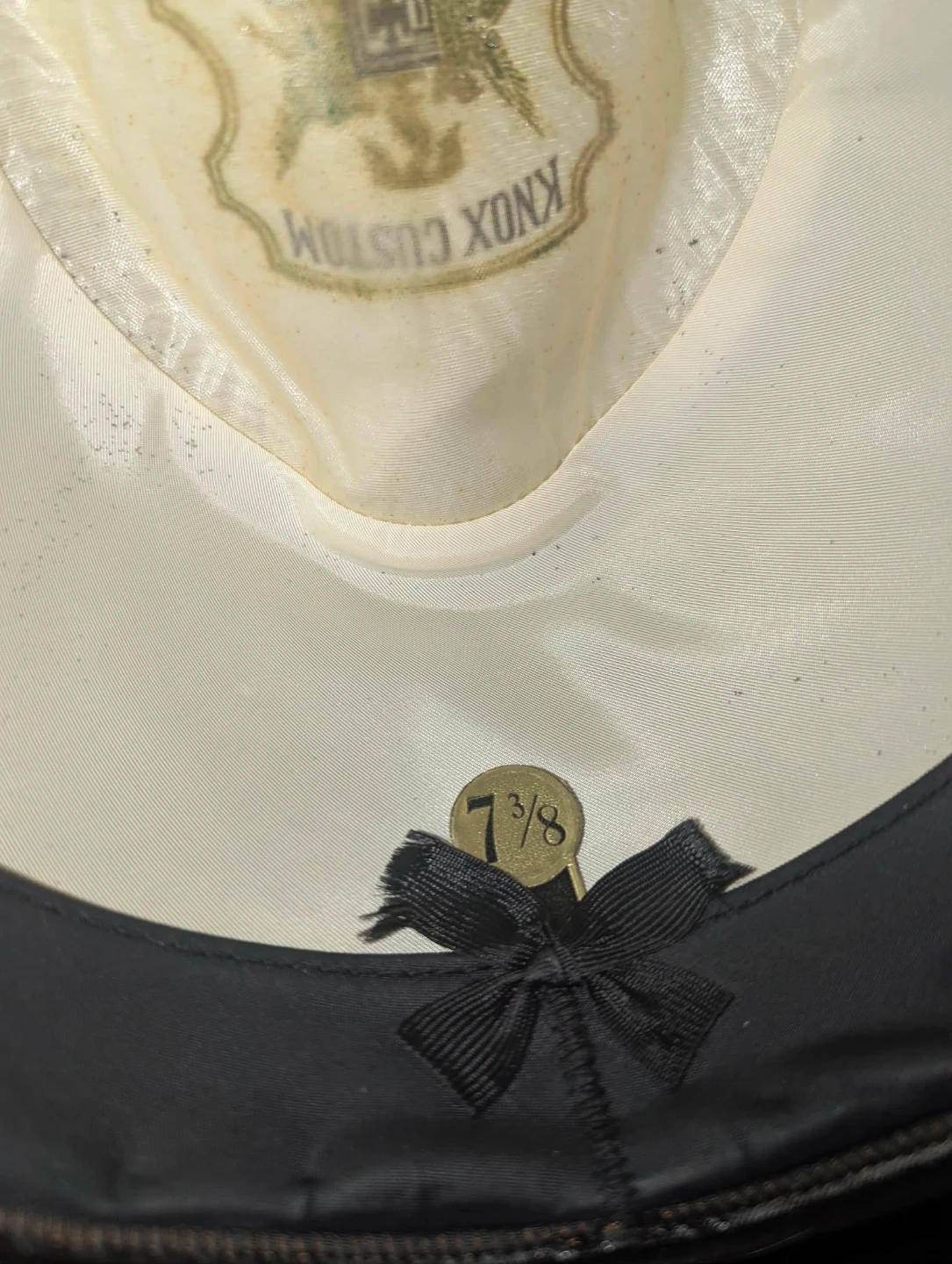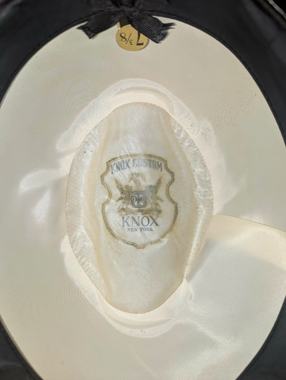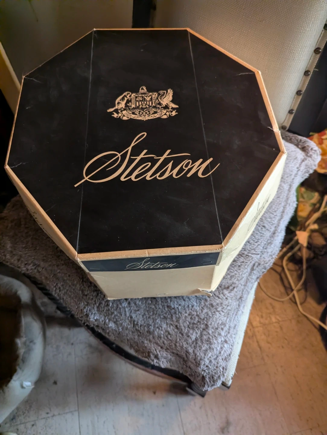 Adding a touch of panache, this hat has stories to tell, and like a good book, it’s ready for its next chapter. If the ad is up, the hat is available, ready to top off your look! Comes in a stetson box.
