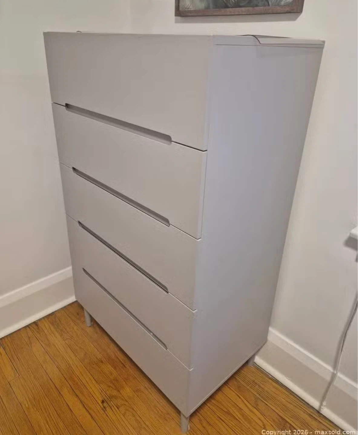Buy & SellGrey 5-Drawer DresserGrey 5-Drawer Dresser$120Grey 5-drawer dresser. Measures approximately 31 inches tall and 20 inches wide. Offers ample storage space for your bedroom.WHERE TO MEETRichmond HillView MapSELLERMahshidHeaddon Gate26425 reviews1 chats·5 favorites·52 viewsSEND CHAT TO SELLERHi Mahshid! I’m interested in your listing.Hi Mahshid! I’m interested in your listing.Get the Karrot app to chatSign In to chat