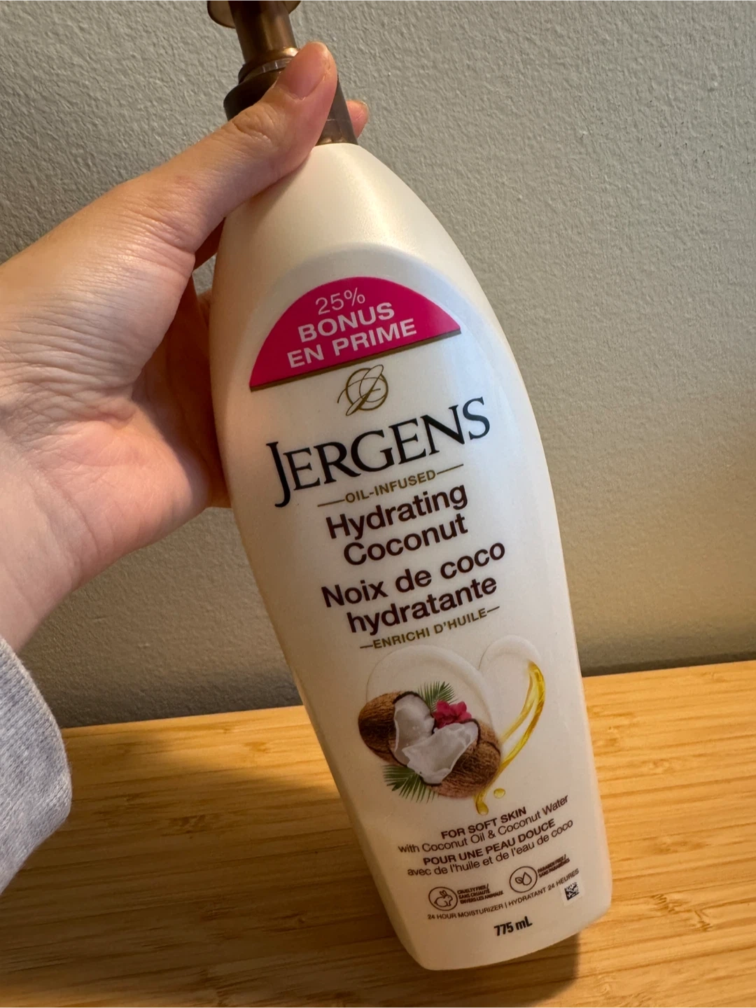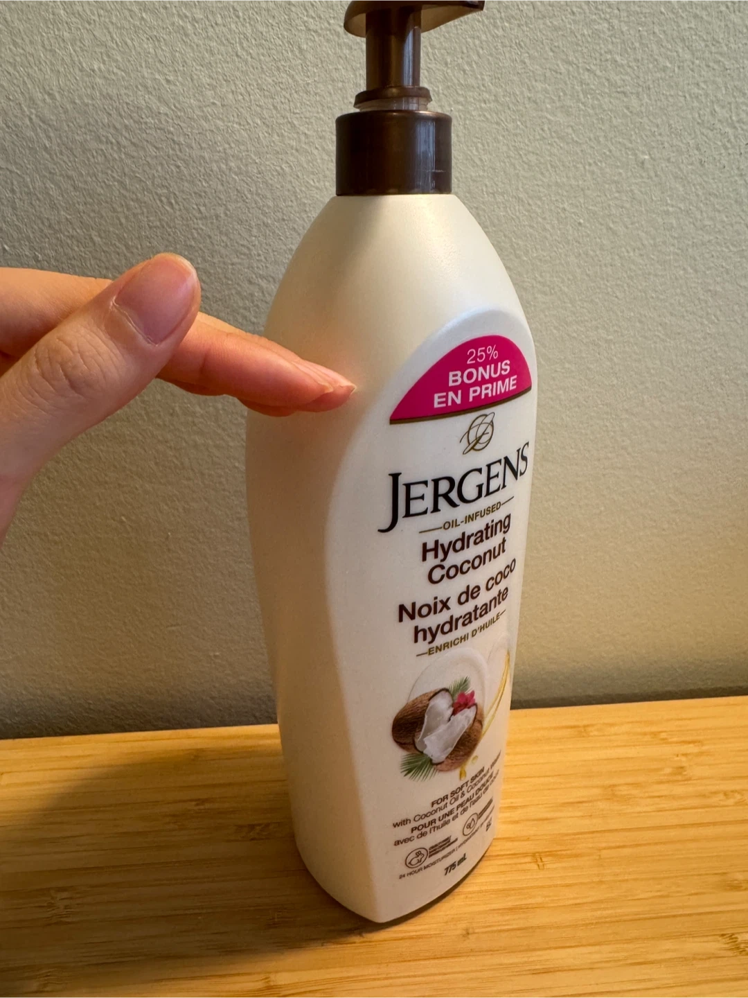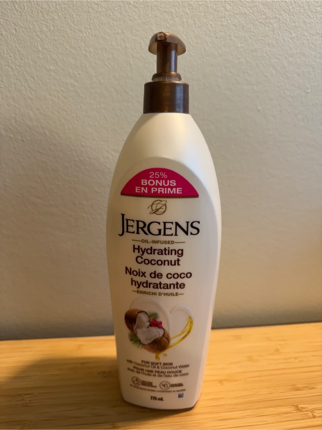 Jergens Hydrating Coconut Moisturizer drenches your skin in moisture for incredible softness. It is infused with Coconut Oil and Coconut Water, known to be rich with revitalizing properties. This moisturizer leaves your skin on a tropical vacation. It is for soft skin with coconut oil and coconut water. This is a 775 ml bottle