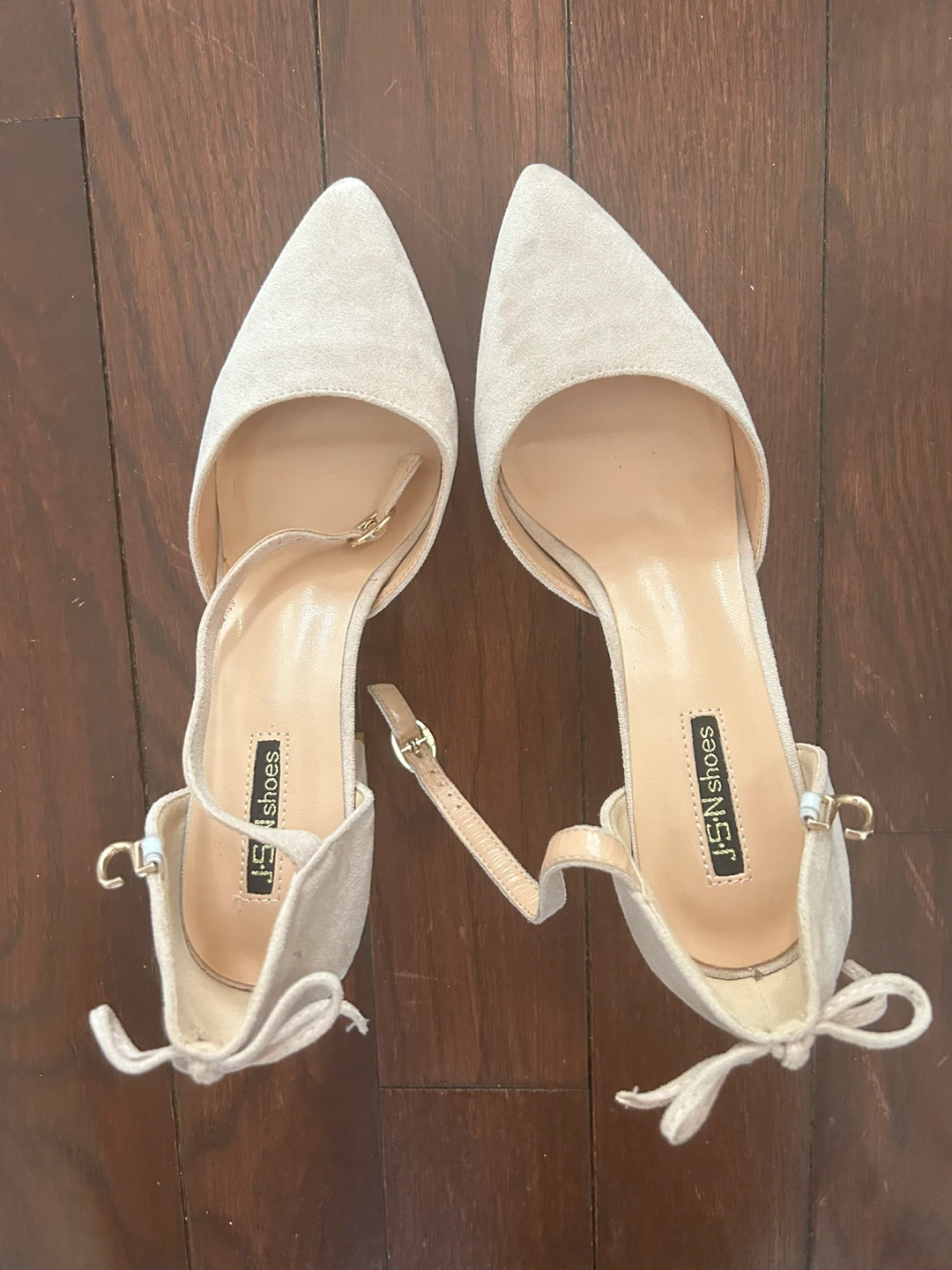 These JSN Shoes are a stylish pair of light cherry pink suede 8cm heels. They feature a pointed toe and an adjustable ankle strap with a cute bow detail. The block heel provides comfortable lift for all-day wear. These would be a nice addition to any wardrobe!