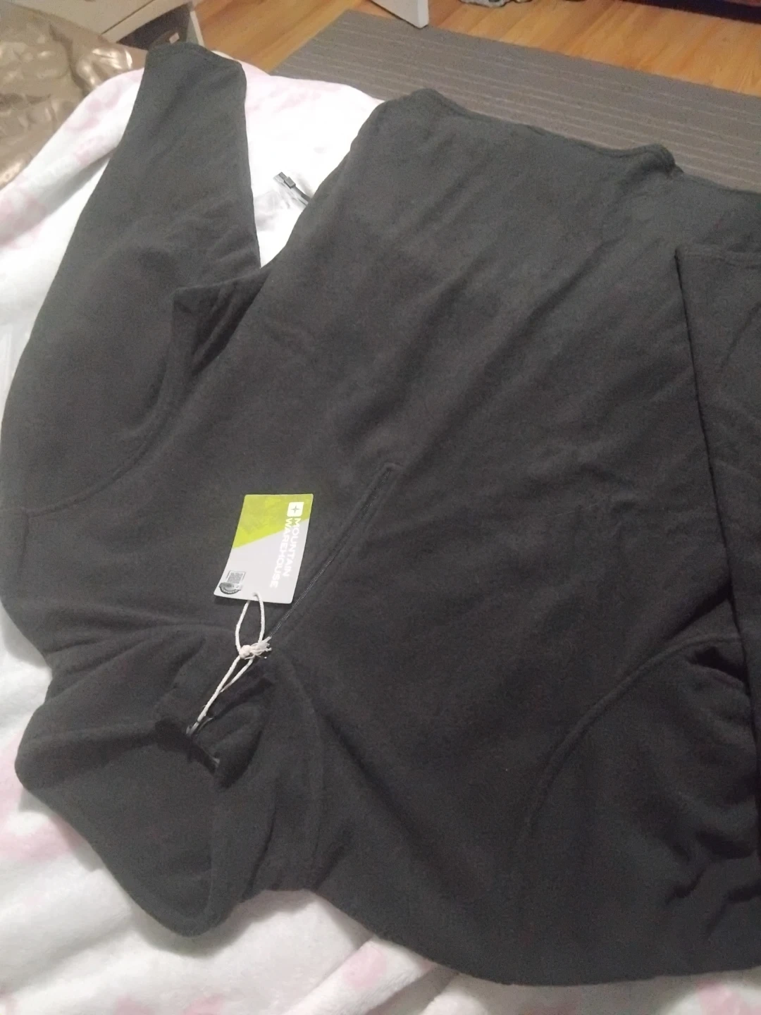 This is a black fleece top from Mountain Warehouse. It's a 1/4 zip style. It's made of soft fleece material.