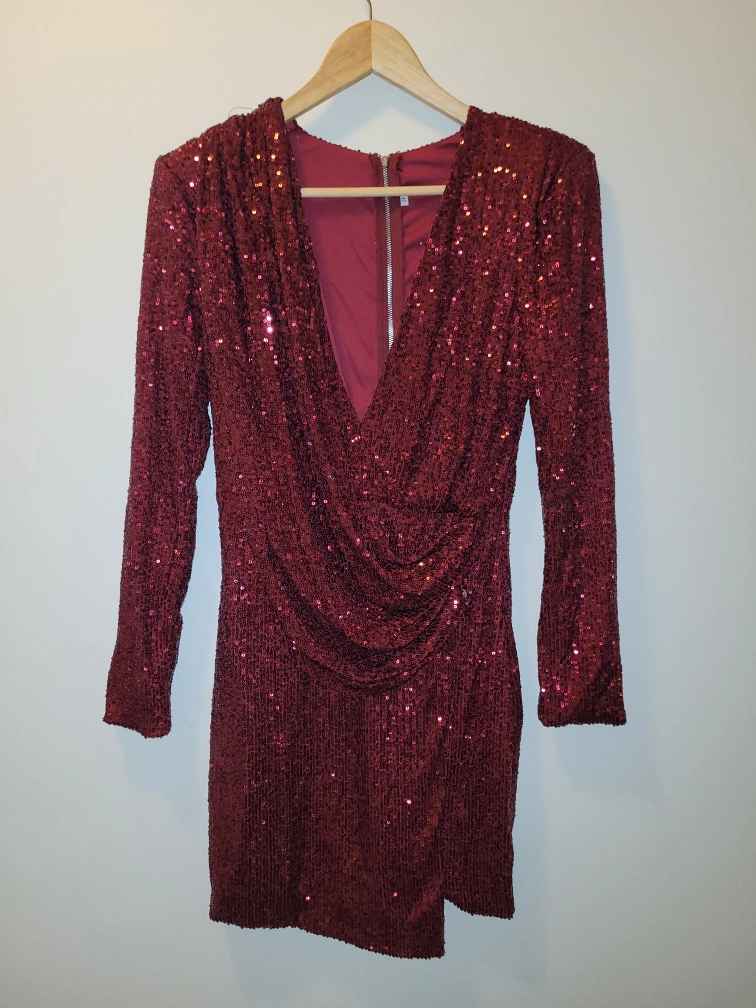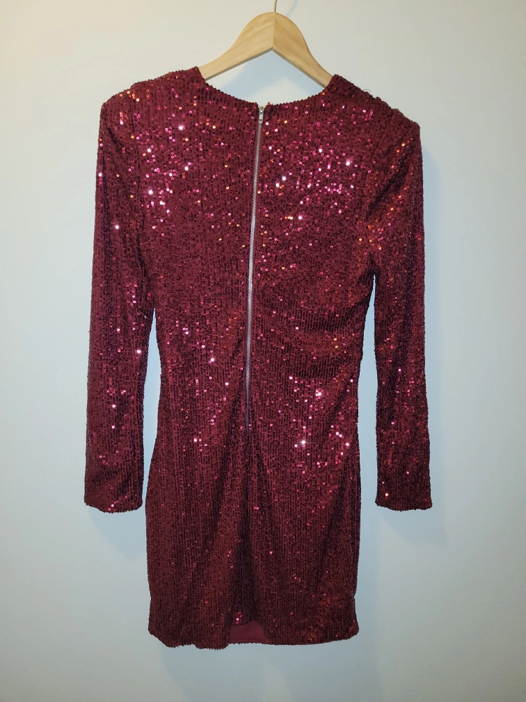 Holiday party season is around the corner and you're guaranteed to turn heads in this sparkly number! Generous size small (would fit medium as well), zipper at back, shoulder pads for extra charisma and confidence when you enter the room ✨️
